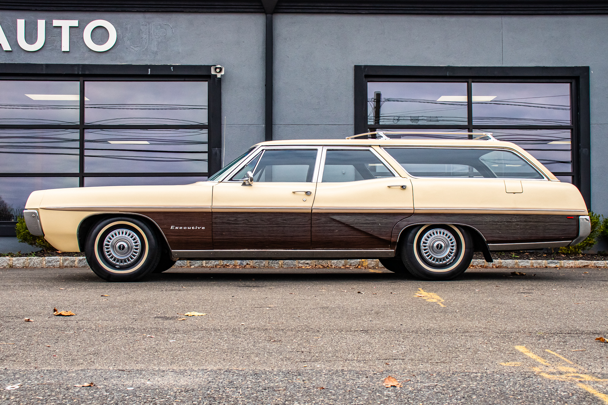 Steel 14″ wheels wear factory covers and are wrapped in 235/75 Coker Classic thin-whitewall tires showing 2007 date codes. Braking is handled by power-assisted drums, and the car is equipped with power steering.