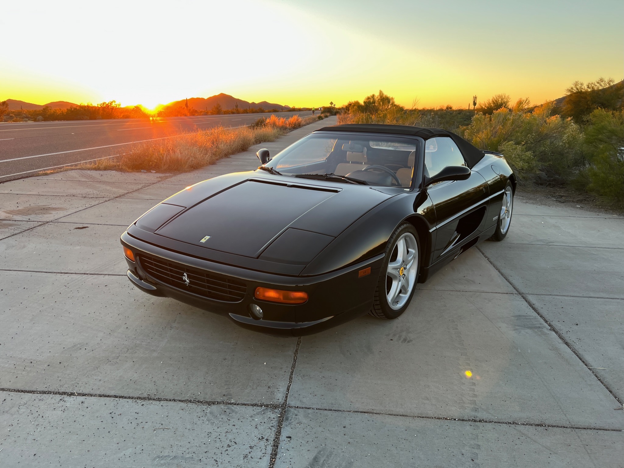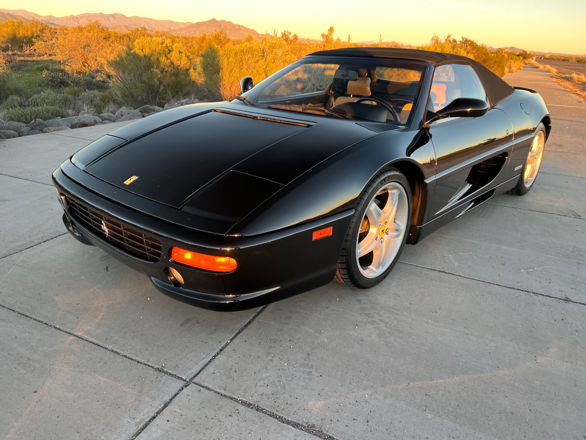 The 18″ five-spoke magnesium wheels show blemishes and have been fitted with Michelin Pilot Sport tires. Ferrari-branded brake calipers are mounted over ventilated discs at each corner.
