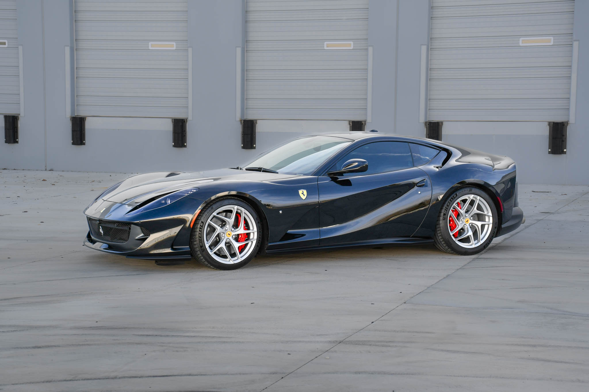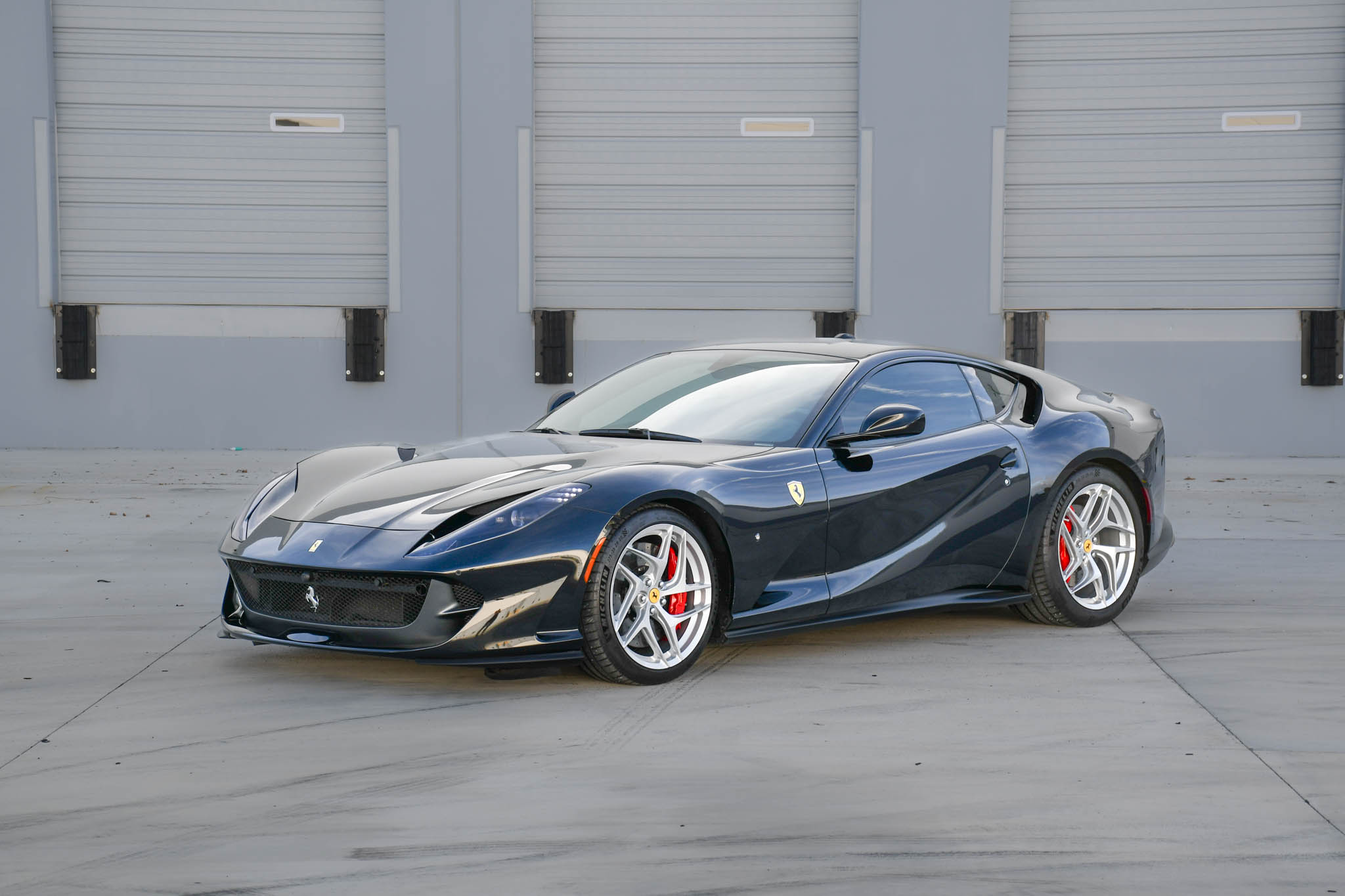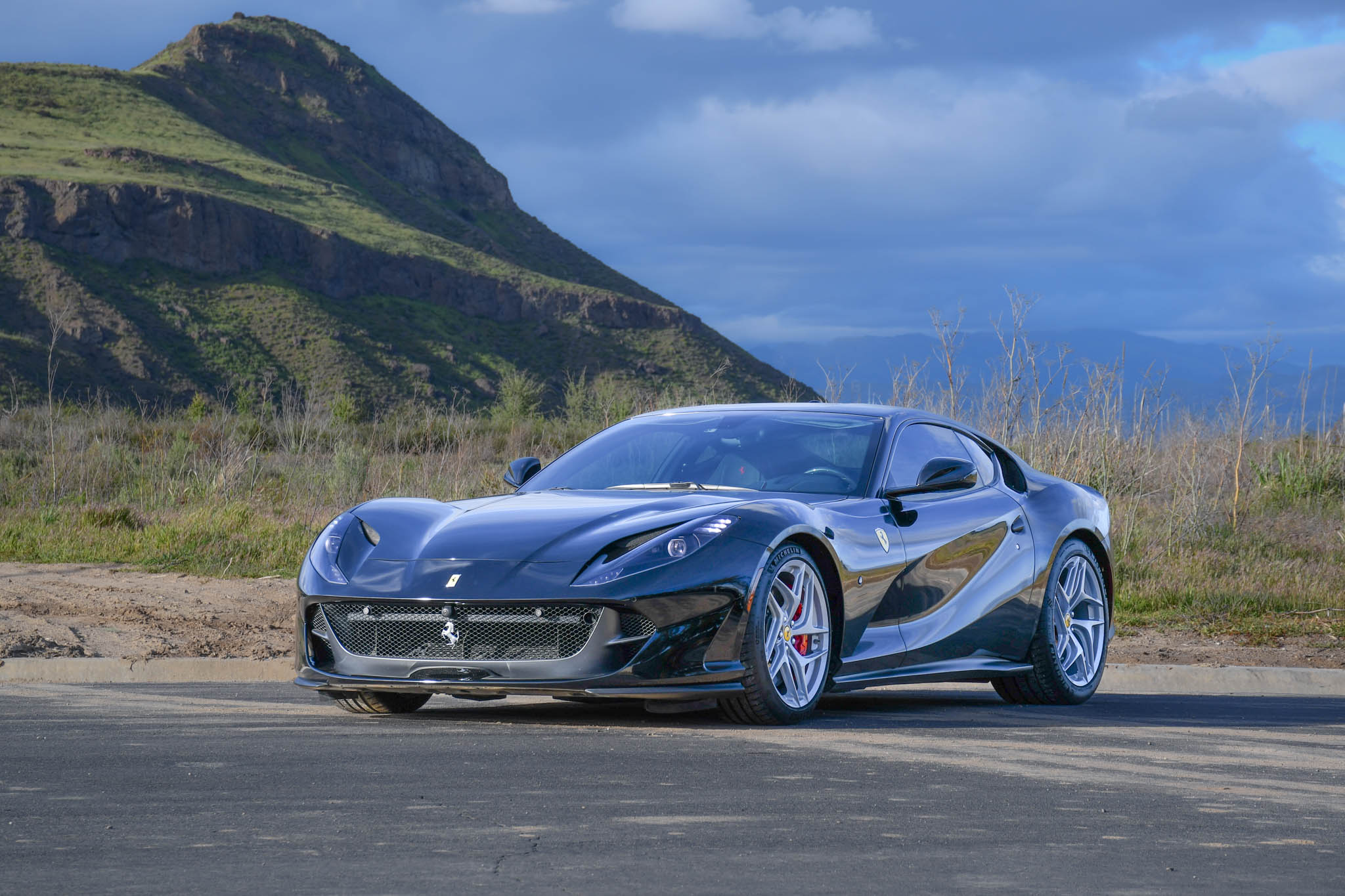 Silver 20″ forged aluminum wheels wear 275/35 front and 315/35 rear Michelin Pilot Sport 4S tires. The 812 Superfast is equipped with rear-wheel steering, and this example was optioned with a suspension lift system. The Brembo Extreme Design brakes feature carbon ceramic discs and red Ferrari-branded calipers at all four corners.