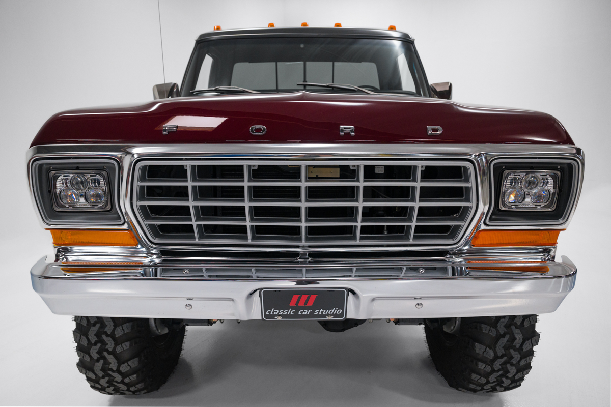 Bright 17″ American Racing wheels are mounted with Interco Super Swamper tires. The truck has manual locking front hubs, and braking power is provided by a Ford SuperDuty Hydroboost braking system.