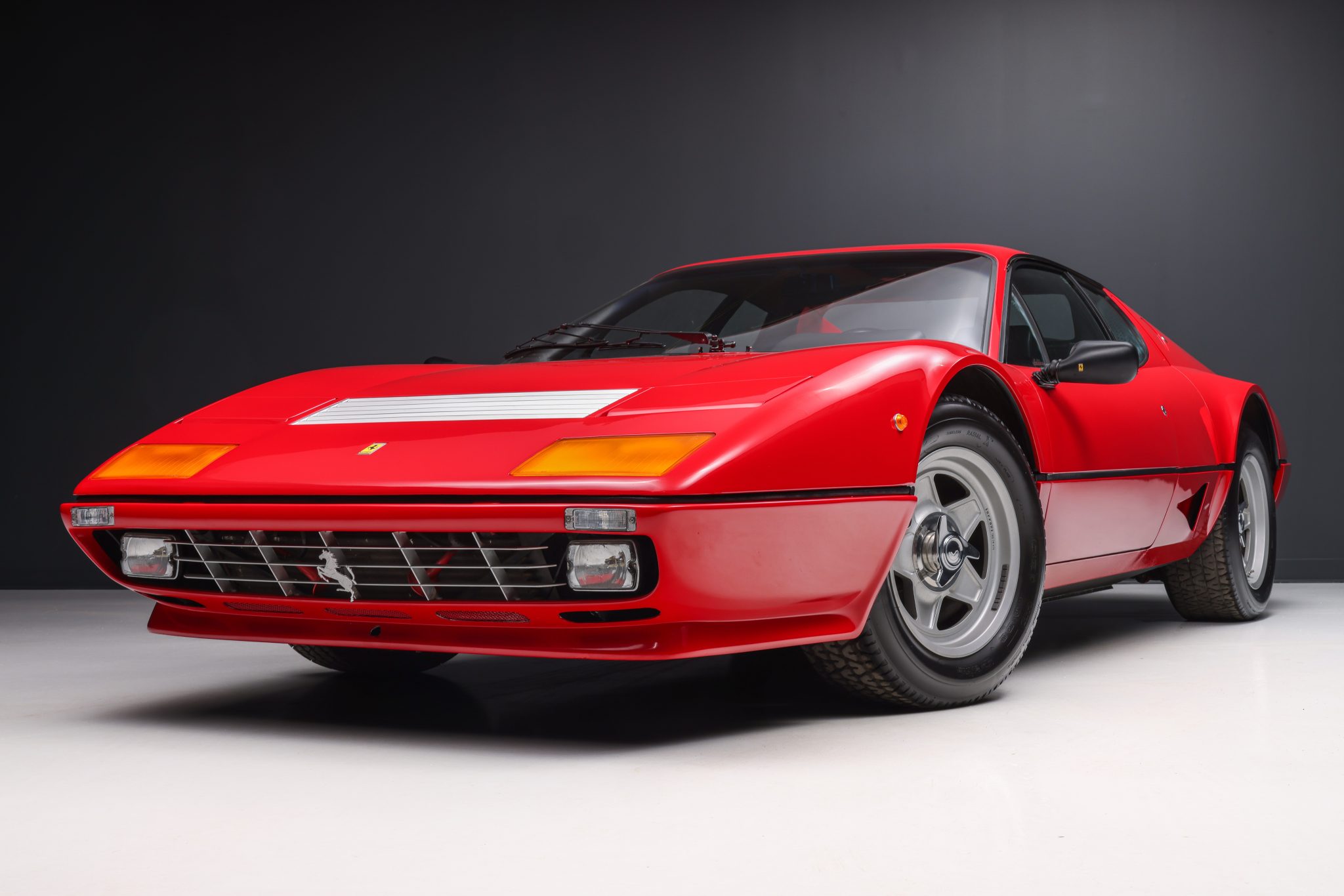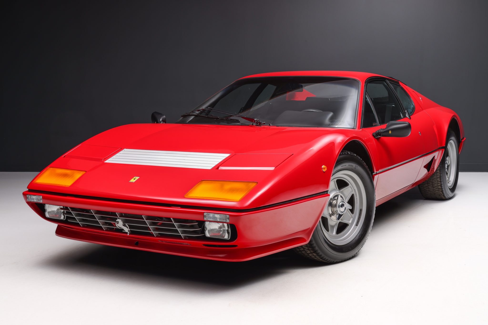 This example is finished in Rosso Corsa and features pop-up headlights, fog lights, a front spoiler, aluminum hood louvers, NACA side ducts, quad exhaust outlets, a locking fuel door, and a black rear high-mount spoiler and engine lid grilles. A blemish is noted on the front spoiler.