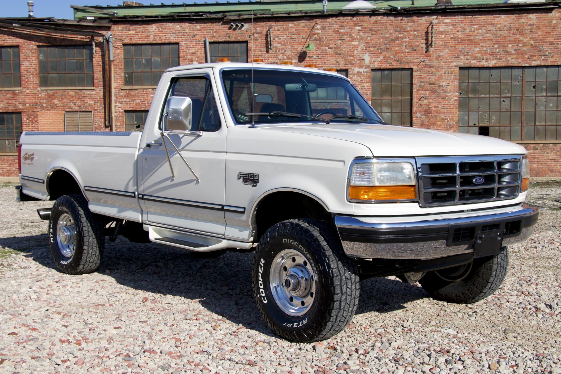 Polished 16″ wheels with chrome center caps are wrapped in 285/75 Cooper Discoverer AT3 XLT tires, and stopping power is provided by front disc brakes along with rear drum brakes. The truck is equipped with manually locking front hubs.