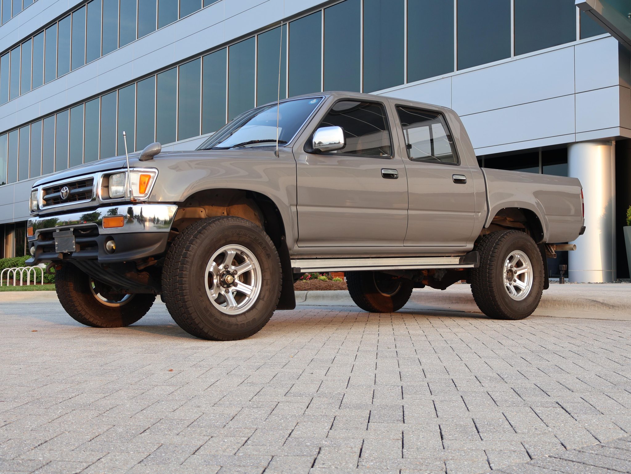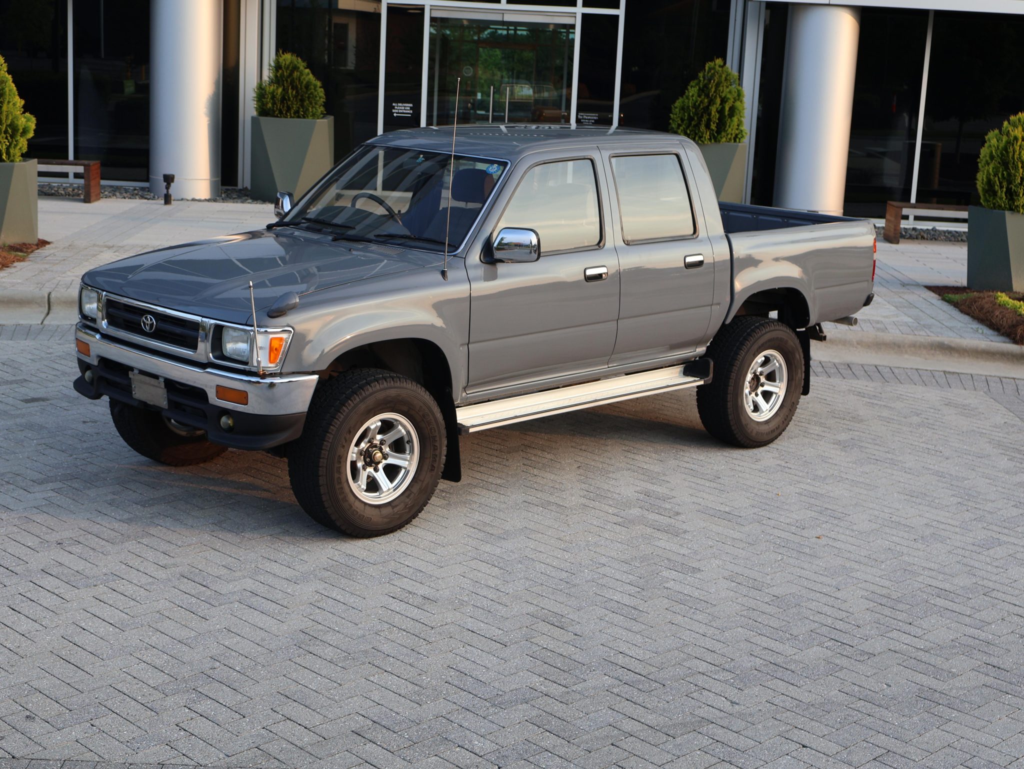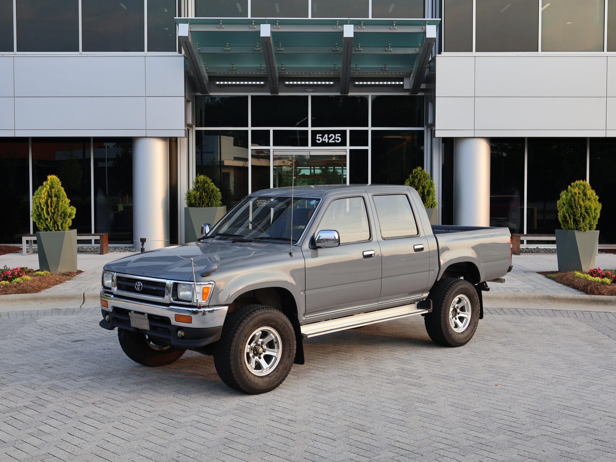 Aftermarket 15″ wheels are mounted with 205/70 Yokohama Geolandar I/T tires and a full-size spare is stored under the bed. The truck is equipped with locking front hubs and stopping power is provided by front disc and rear drum brakes.