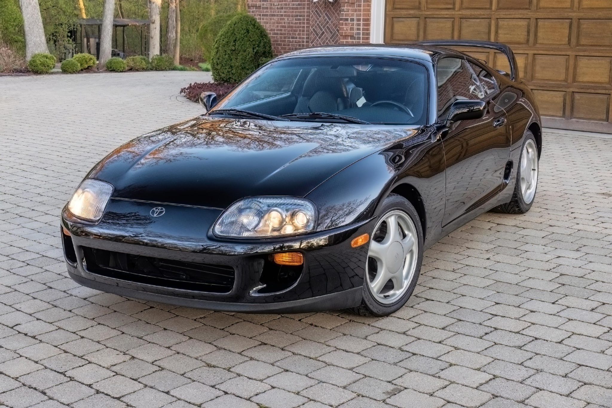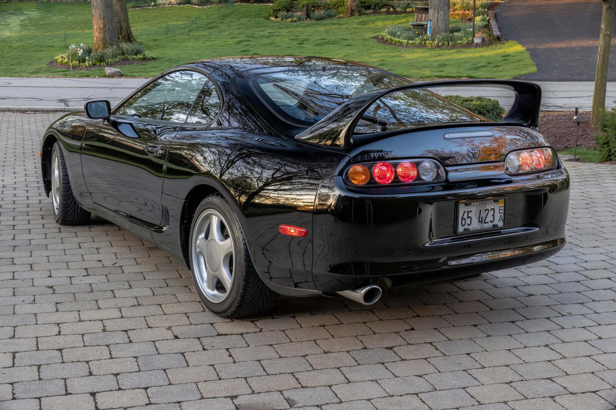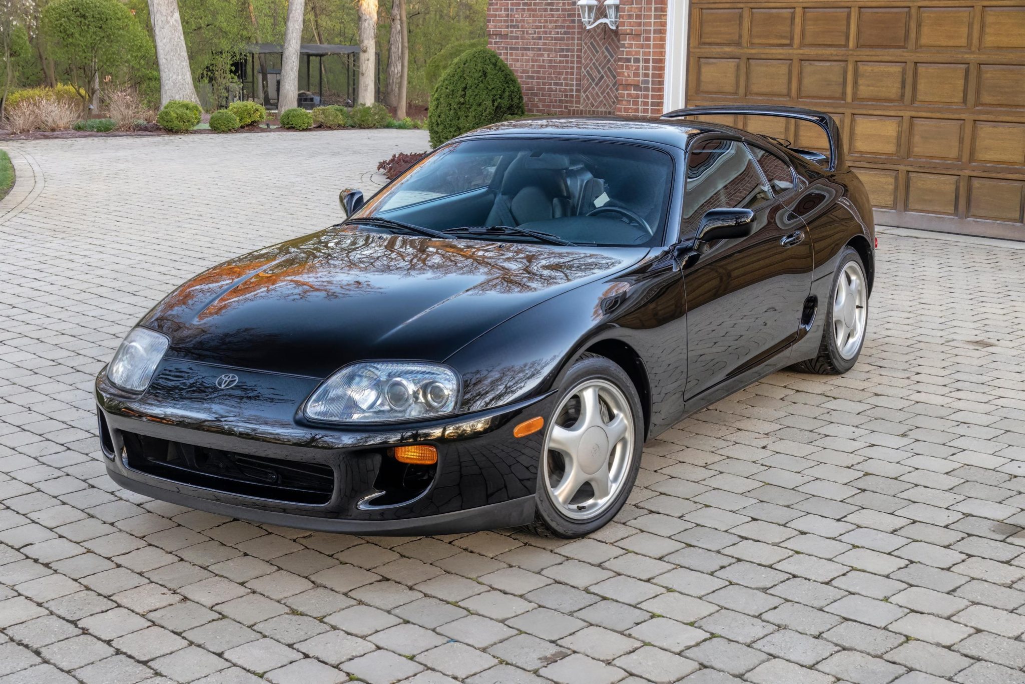 Silver-finished 17″ five-spoke wheels are mounted with Michelin Pilot Sport tires measuring 235/45 up front and 255/40 out back. Dates codes of 4601 and 3601 are visible on the sidewall and the seller states 7/32″ tread remains. The car rides on a four-wheel double-wishbone suspension system and features speed-sensing progressive power rack-and-pinion steering and electronic traction control. Anti-lock braking is provided by Supra-branded calipers over vented discs at all four corners. The rotors and pads were replaced in 2018.