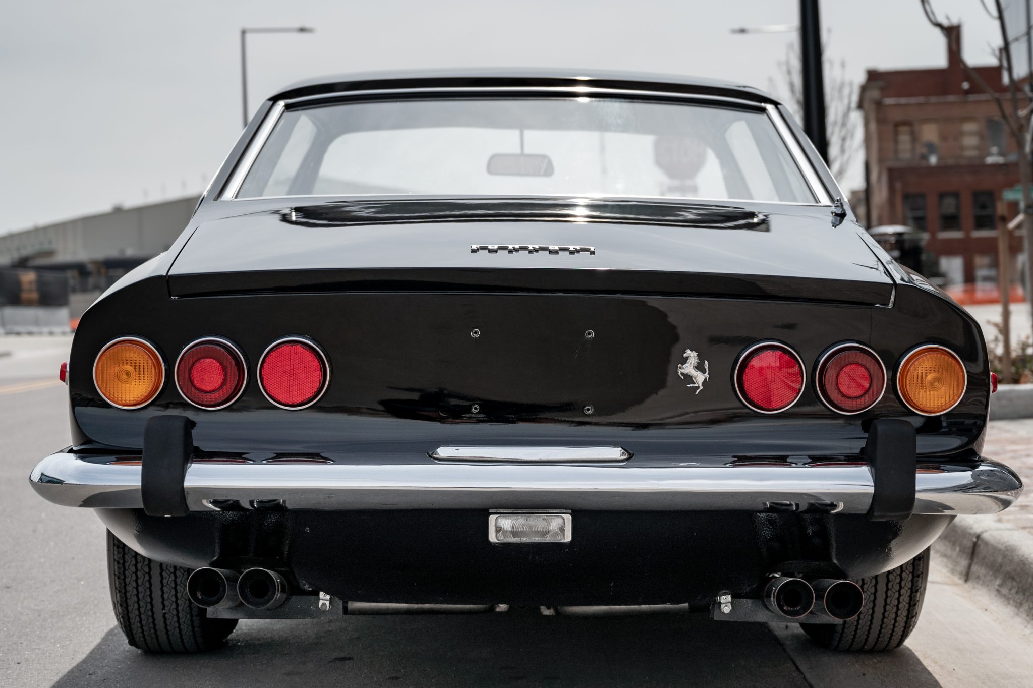 The rectangular taillight bezels were deleted during the work by Brian Moore Restorations, and the rear panel was modified to allow the rear lighting to be mounted directly into the bodywork. Chrome brightwork was re-plated and aluminum and stainless-steel trim was straightened and polished by Classic Chrome in Sacramento during the project.
