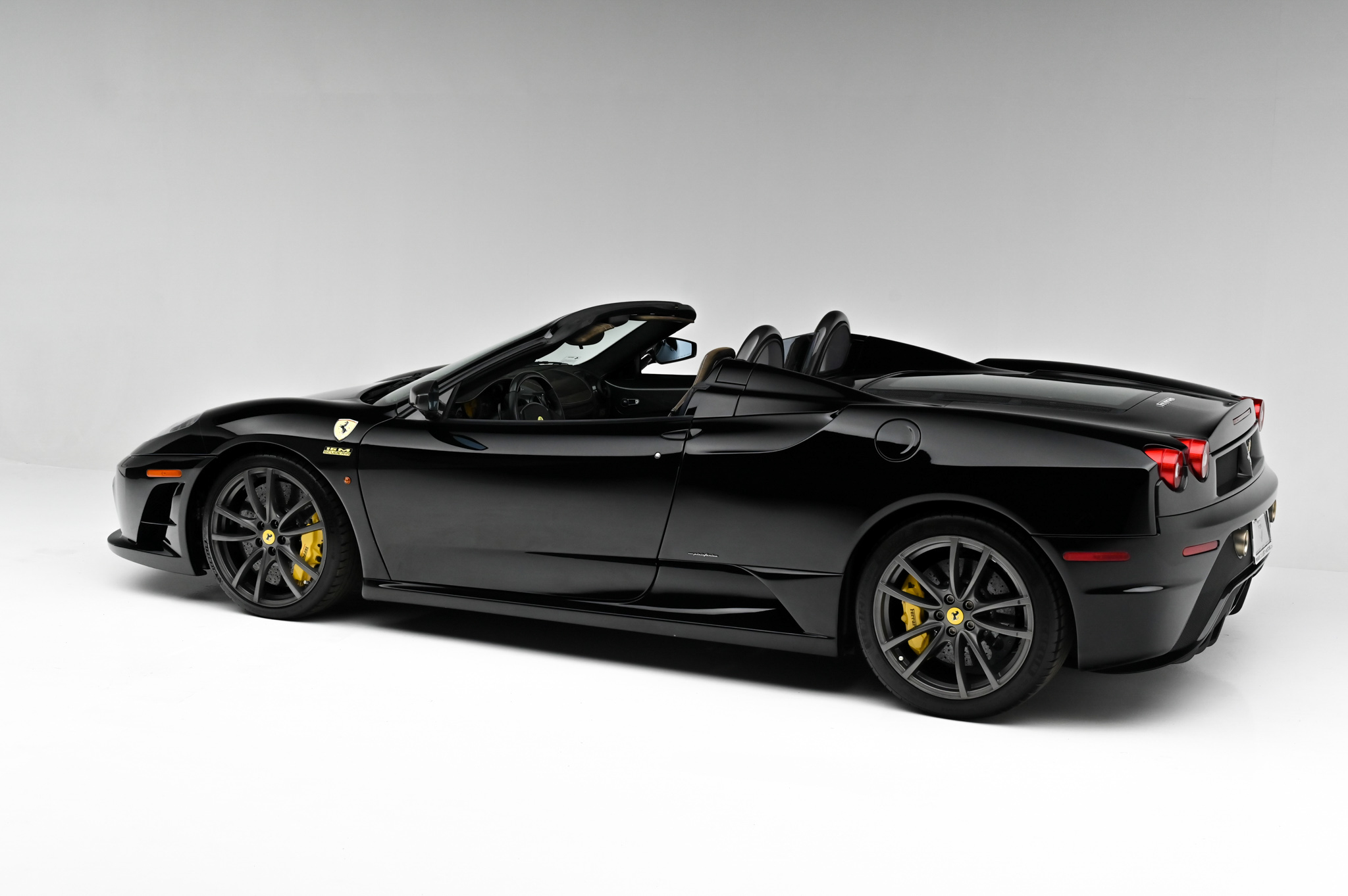 Gray-finished 19″ Scuderia alloy wheels are mounted with 235/35 front and 285/35 rear Michelin Pilot Sport 4S tires that show 2022 date codes. The 16M features a stiffened chassis and a retuned suspension with ZF dampers and titanium springs. Braking is handled by yellow-finished brake calipers over Brembo carbon-ceramic rotors. The Carfax report shows a manufacturer safety recall for replacement of the brake oil reservoir in a September 2022 entry.