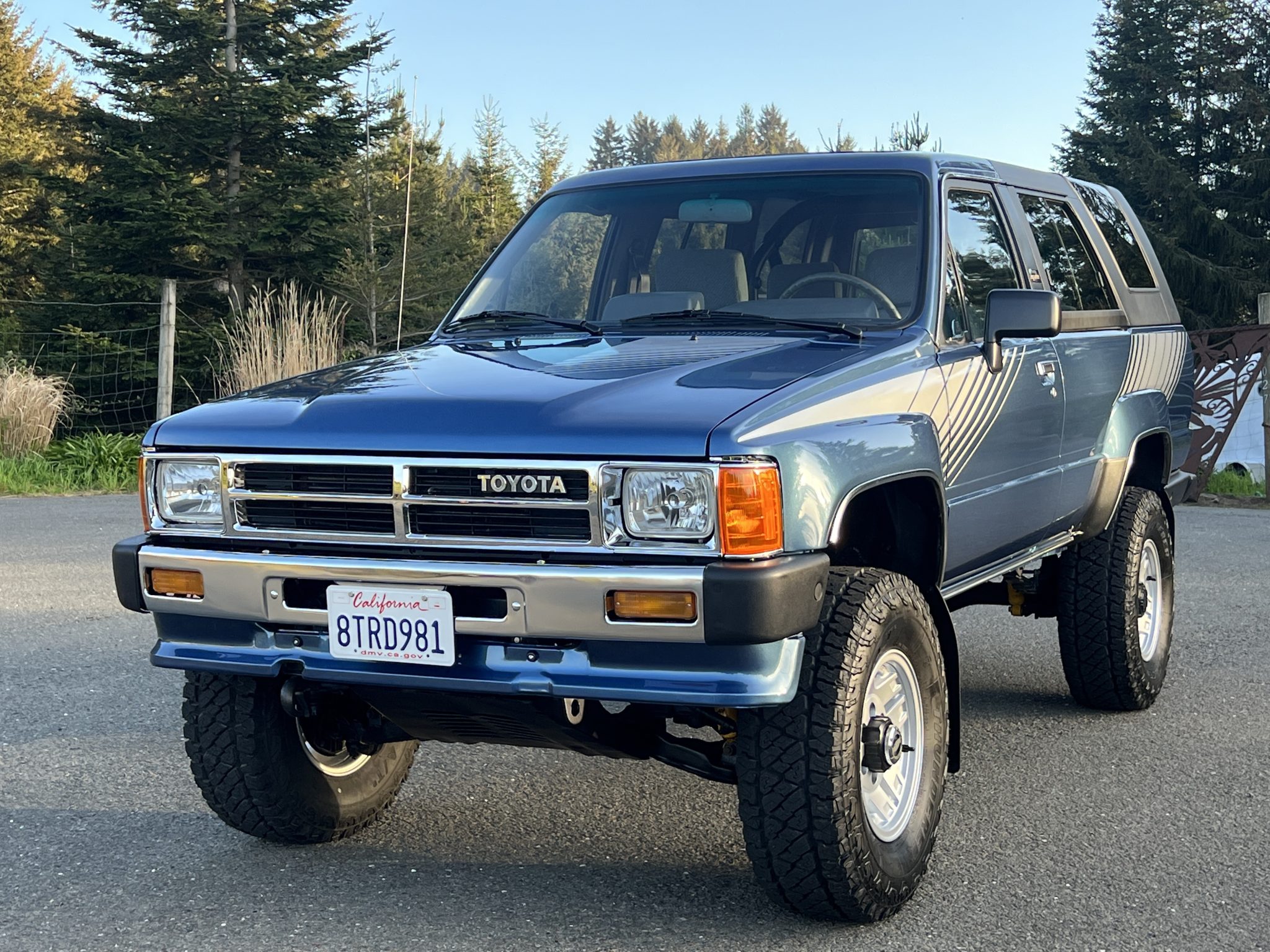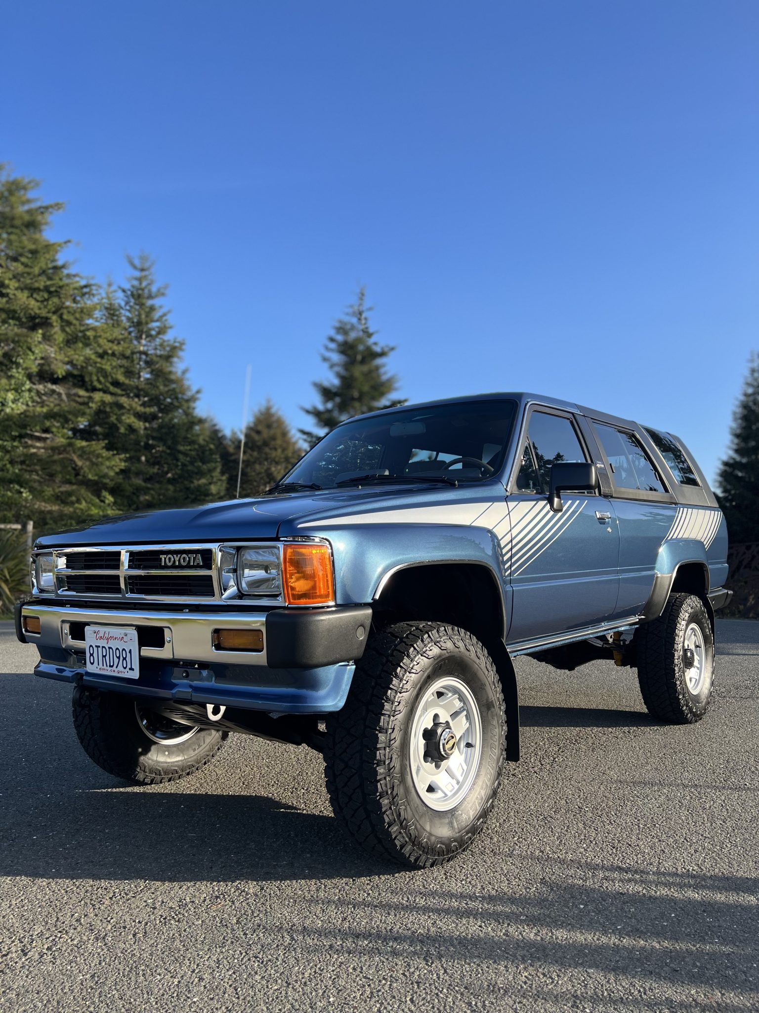 Silver-finished 15″ alloy wheels were reportedly mounted with 31×10.50″ Thunder Ranger A/T tires under current ownership. Braking is handled by power-assisted front discs and rear drums. The truck is equipped with power steering, which reportedly received a fluid service under current ownership. The seller states that the front hubs were serviced and greased and that aftermarket dampers, and springs were replaced under current ownership. The suspension torsion bars and upper and lower ball joints, were replaced under current ownership.
