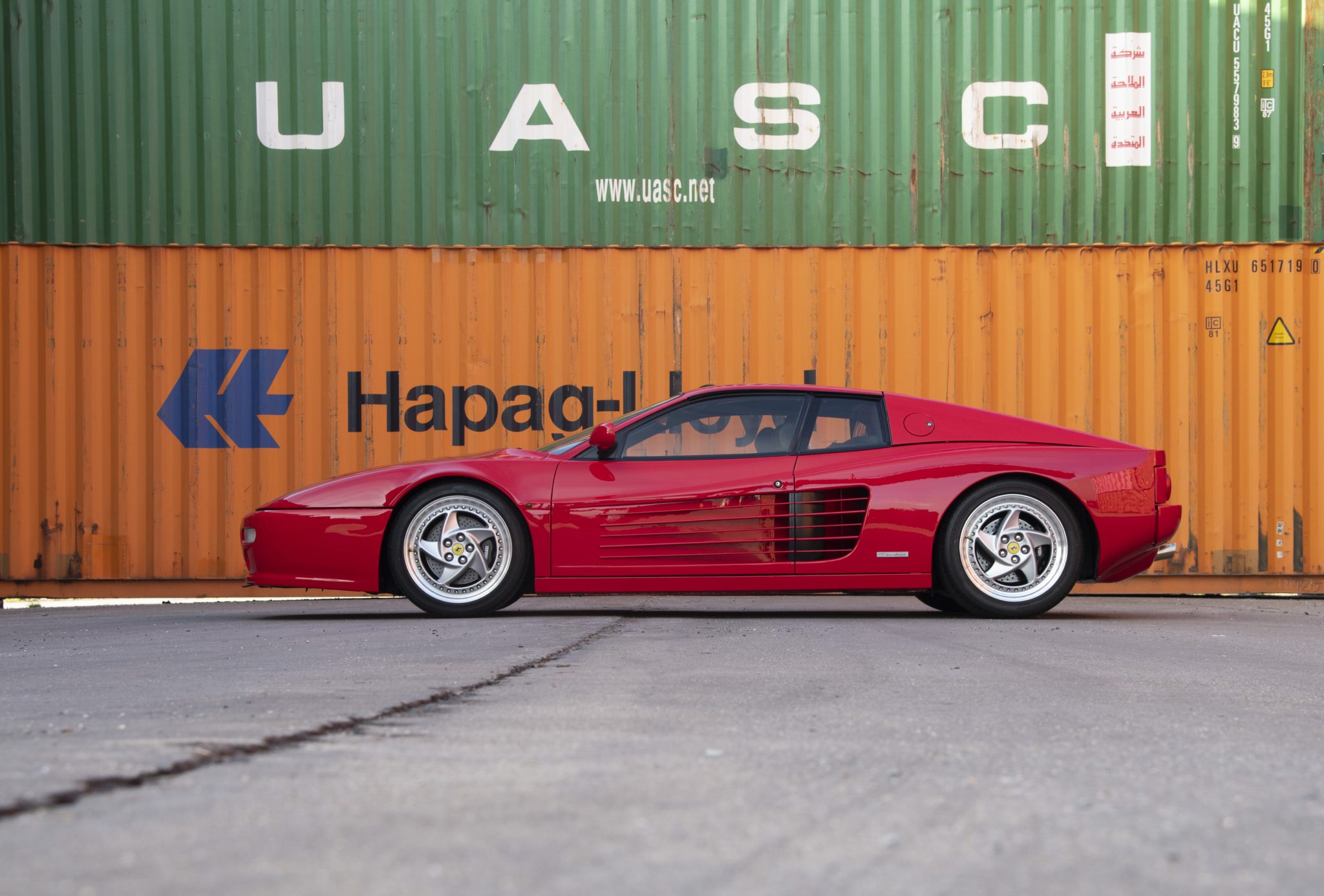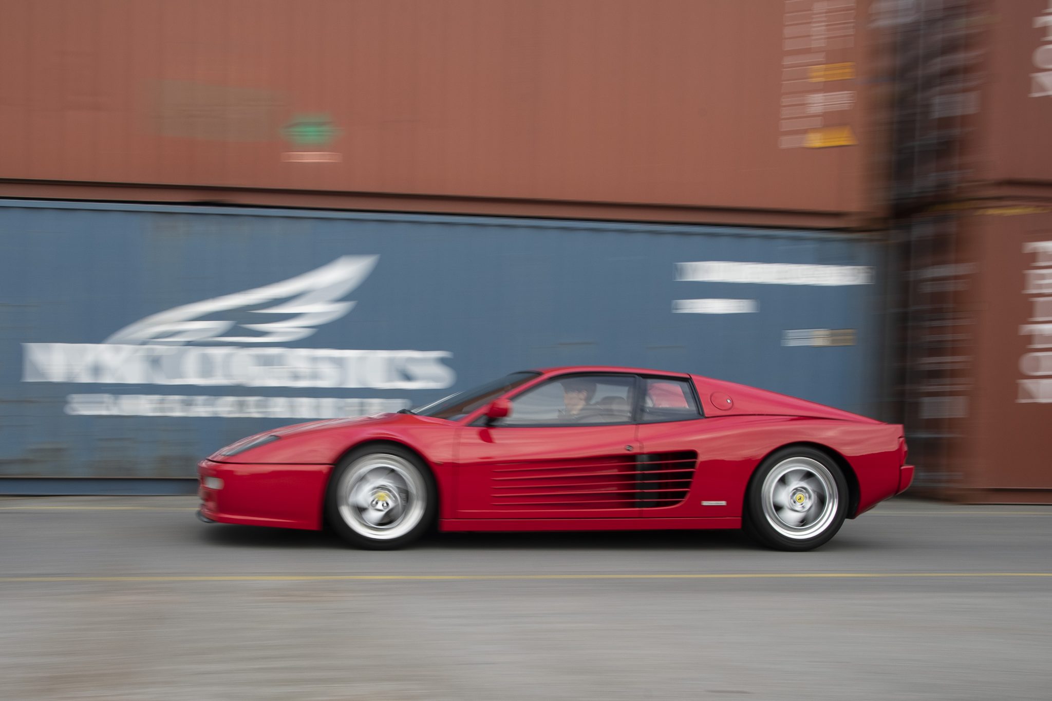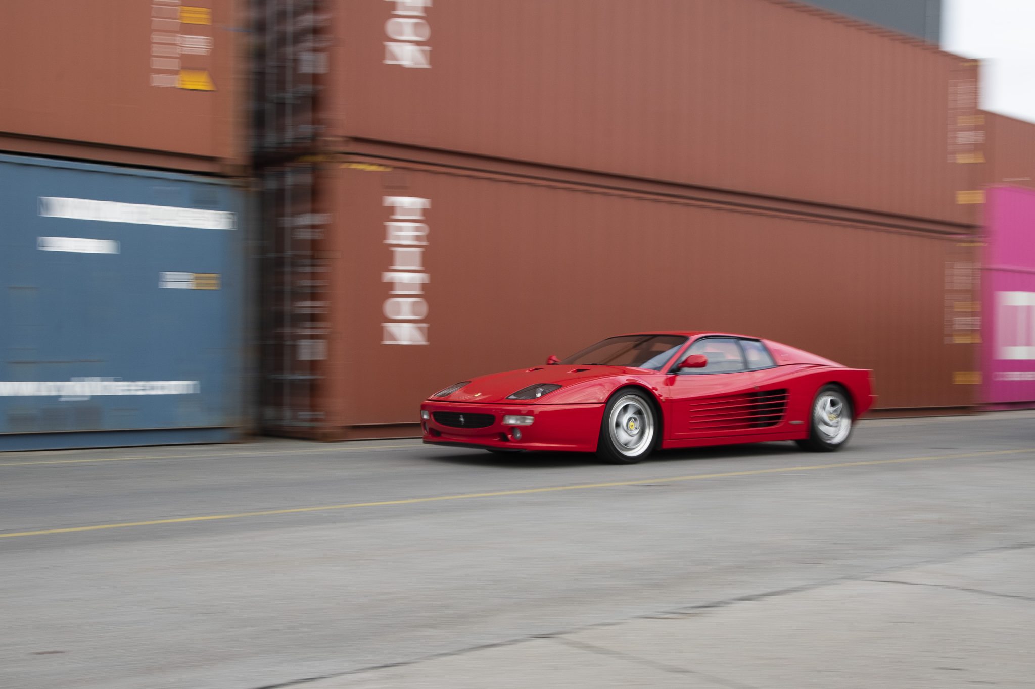 Multi-piece Speedline 18″ alloy wheels are mounted with 235/40 front and 295/35 rear Michelin Pilot Sport tires that were installed in February 2023. Stopping power is provided by black Ferrari-branded calipers over cross-drilled and ventilated discs at each corner. Fresh brake fluid was added in September 2020.