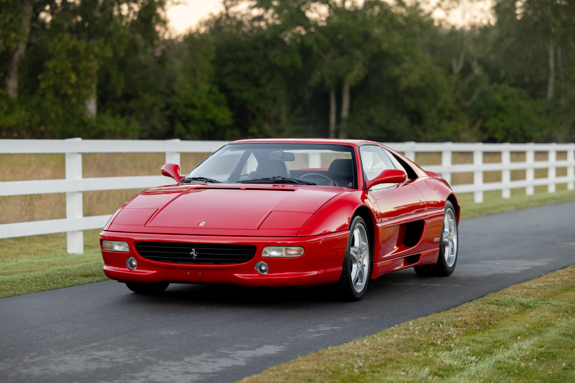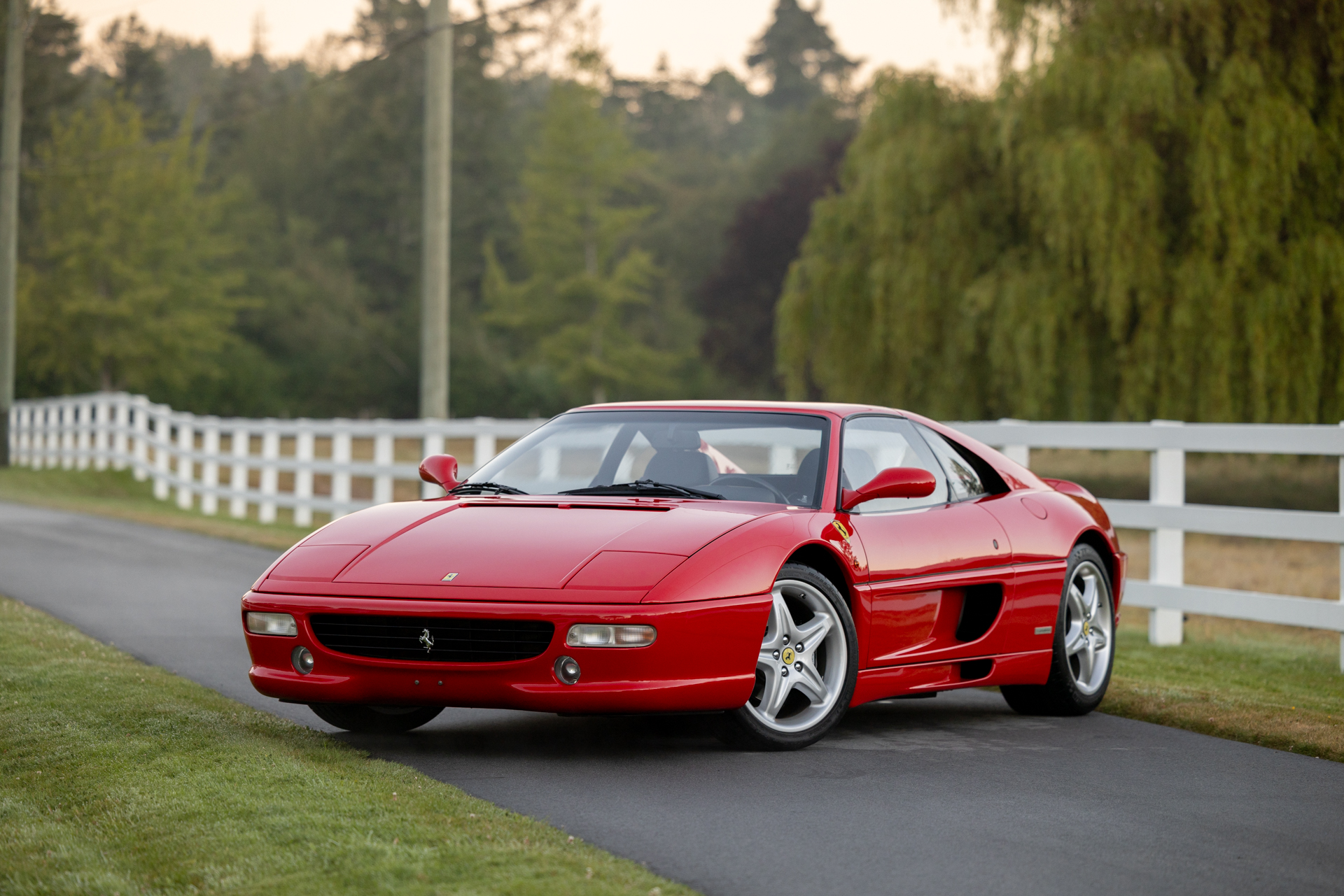 The 18″ five-spoke magnesium wheels are mounted with Michelin Pilot Super Sport tires that show date codes from 2021. Ferrari-branded brake calipers are mounted over ventilated discs at each corner.