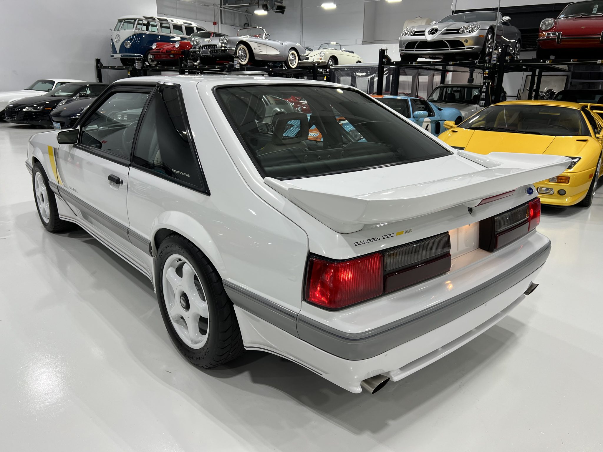 Oxford White 16″ five-spoke alloy wheels with Saleen logo center caps wear BFGoodrich g-Force tires sized 225/50 up front and 245/50 out back. The braking system is equipped with grooved rotors on all four corners. The car came equipped with Monroe Formula GP electronically adjustable shocks and struts.
