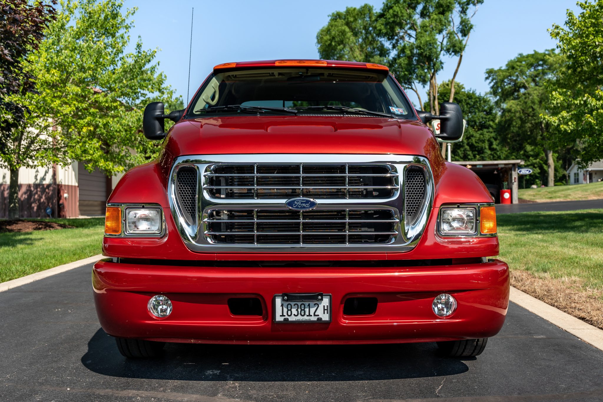 Polished 19.5″ alloy wheels are wrapped in 245/70 Goodyear G647 RSS tires mounted during current ownership. This F-650 rides on a 194″ wheelbase and features a Hendrickson HAS190 single-axle rear air-suspension system. Stopping power is provided by four-wheel disc brakes, and the truck is equipped with an air-powered parking brake.