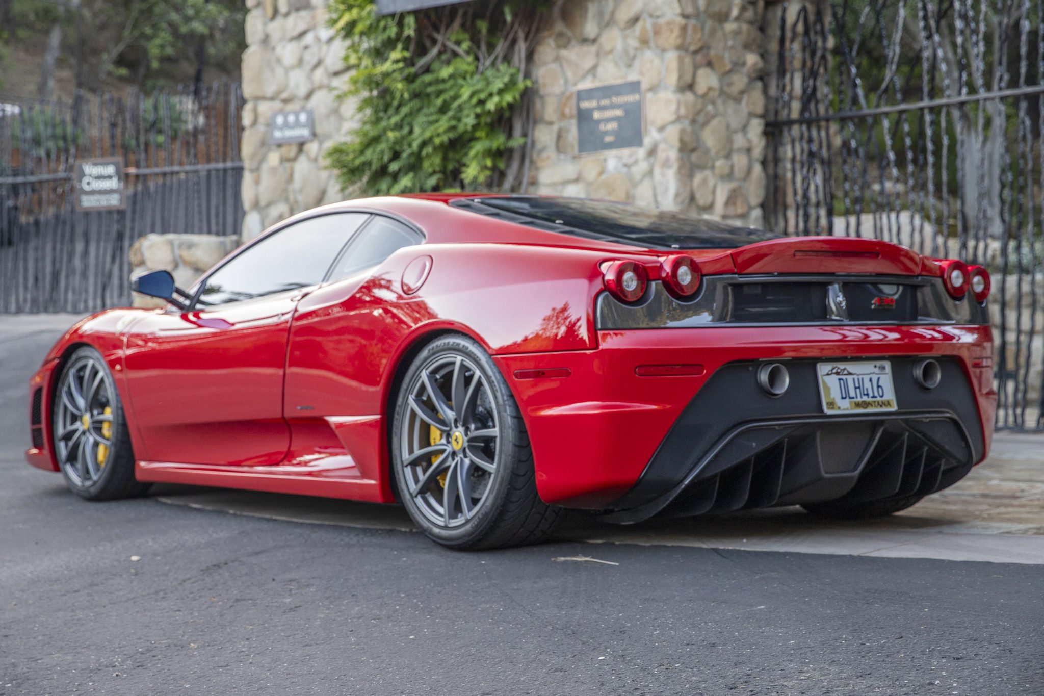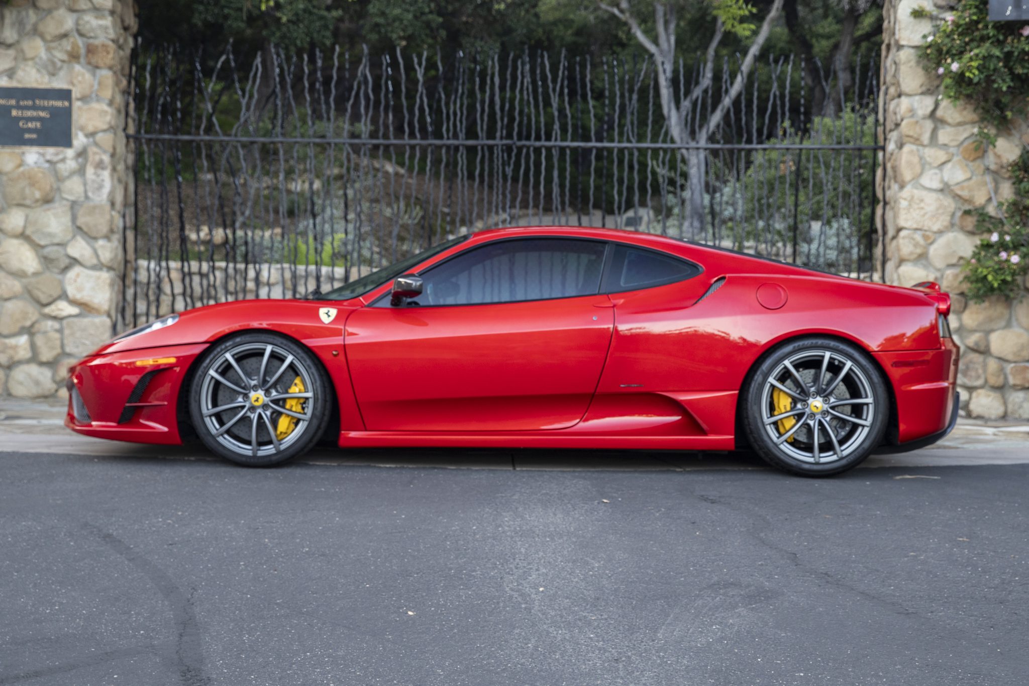 The 19″ Scuderia alloy wheels are mounted with 235/35 front and 285/35 rear Pirelli P Zero Corsa tires. Braking is handled by yellow-finished brake calipers fitted over Brembo carbon-ceramic rotors. A brake fluid flush was carried out in preparation for the sale.