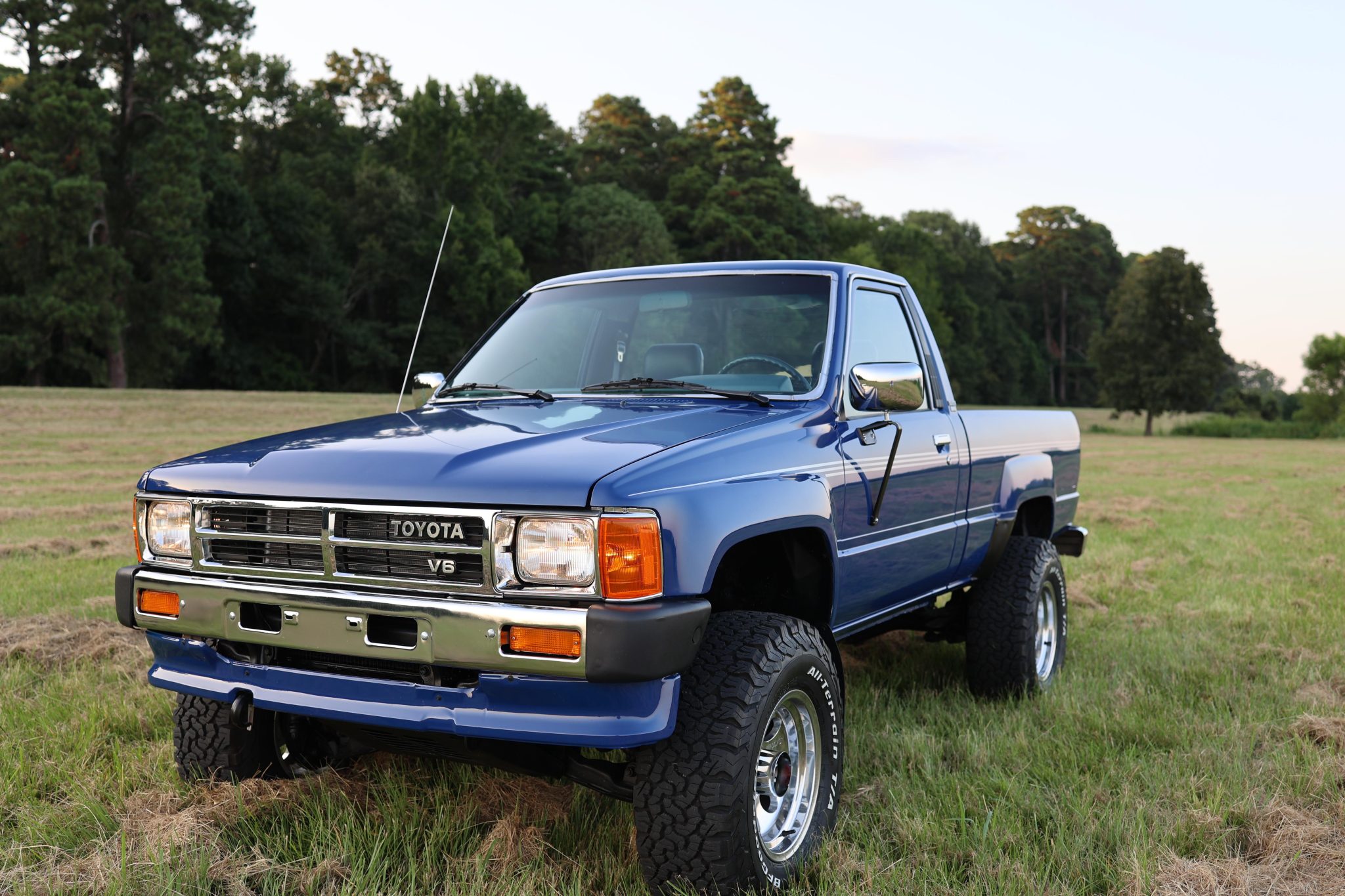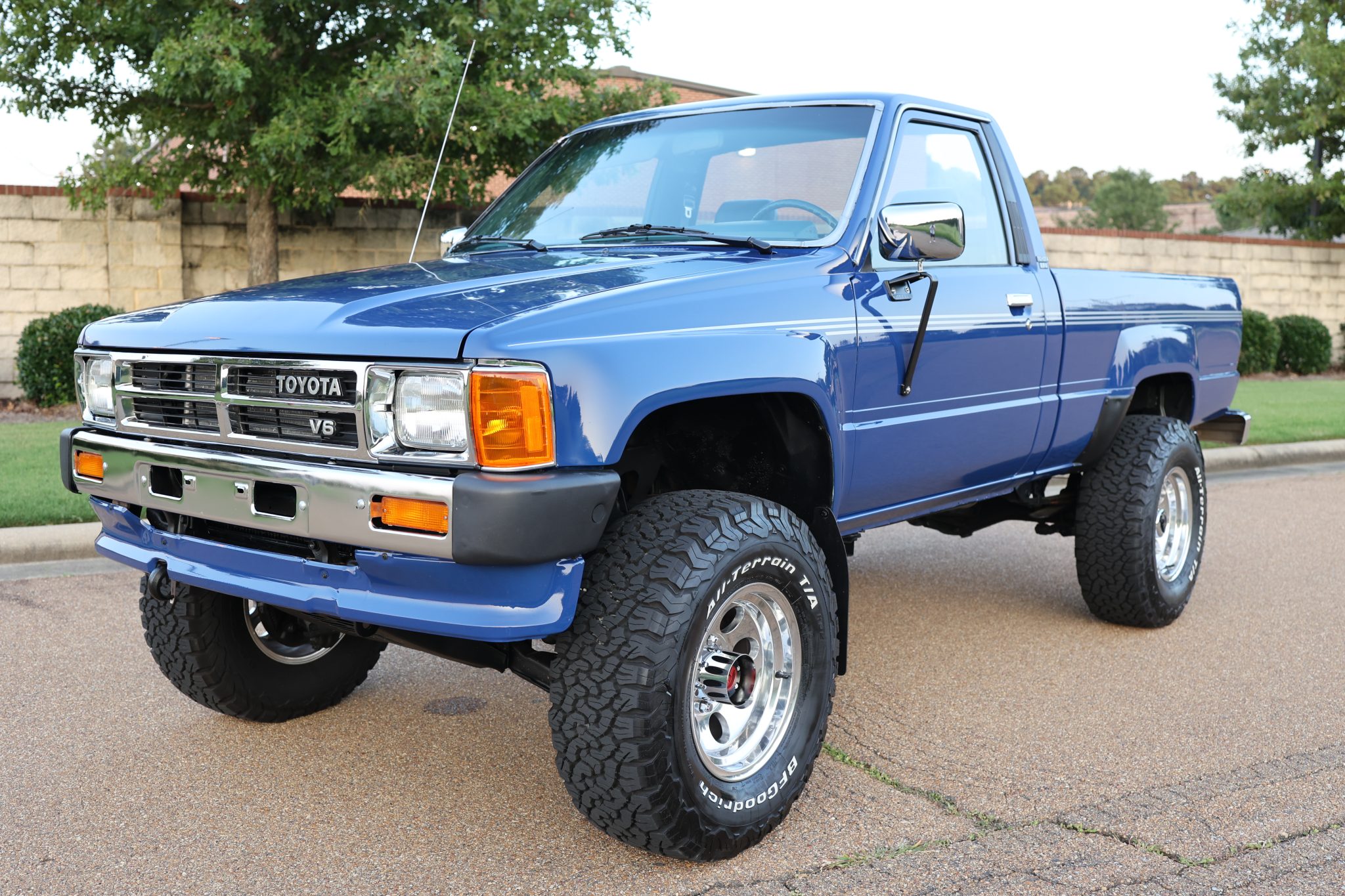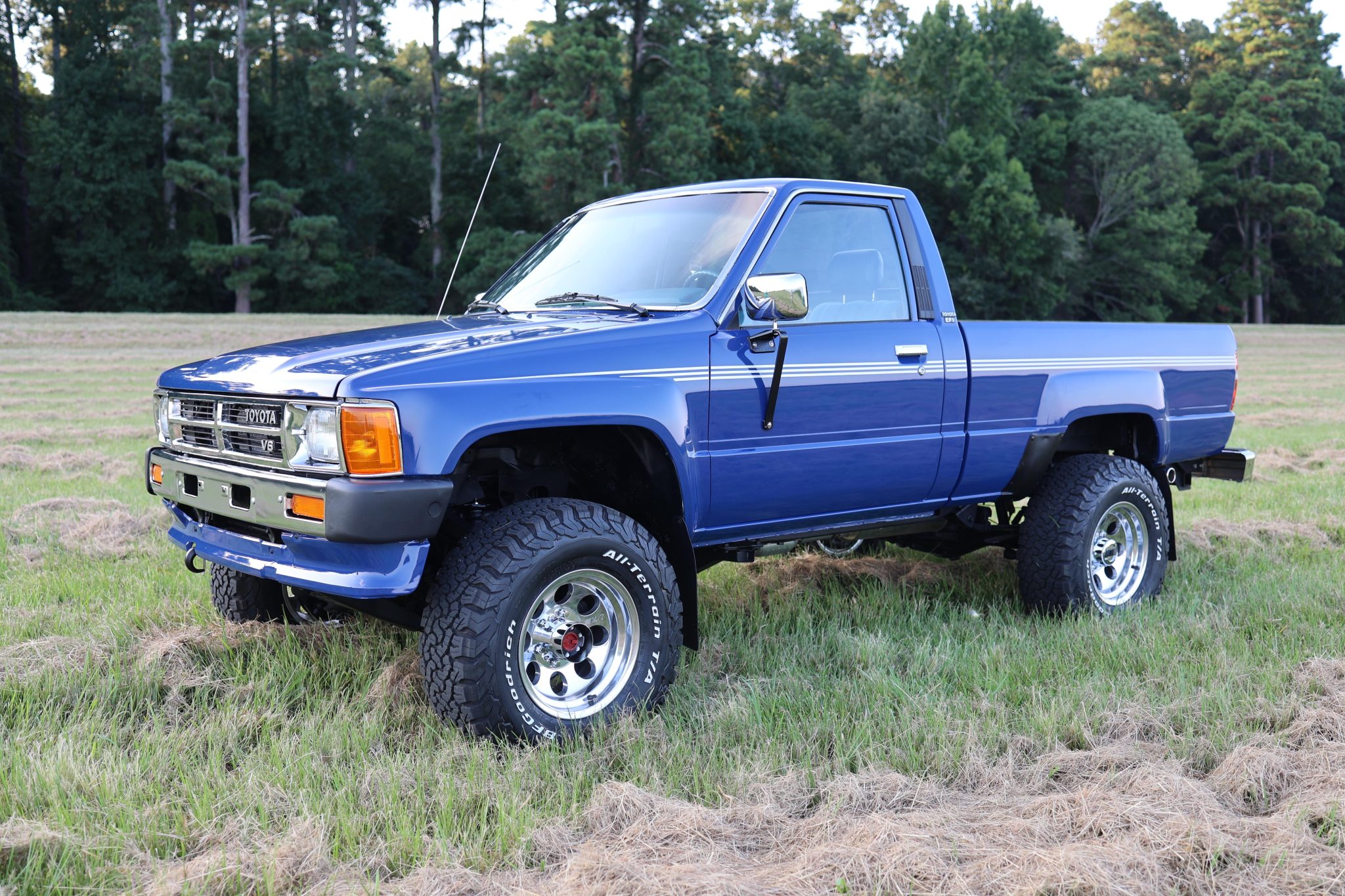 Polished 15″ Mickey Thompson Classic III wheels are mounted with 31×10.5″ BFGoodrich All-Terrain T/A K02 that were mounted in 2023. The truck is equipped with manually locking front hubs, and braking is handled by power-assisted front discs and rear drums. The shocks, steering stabilizer, and sway bar links were replaced in May 2023.