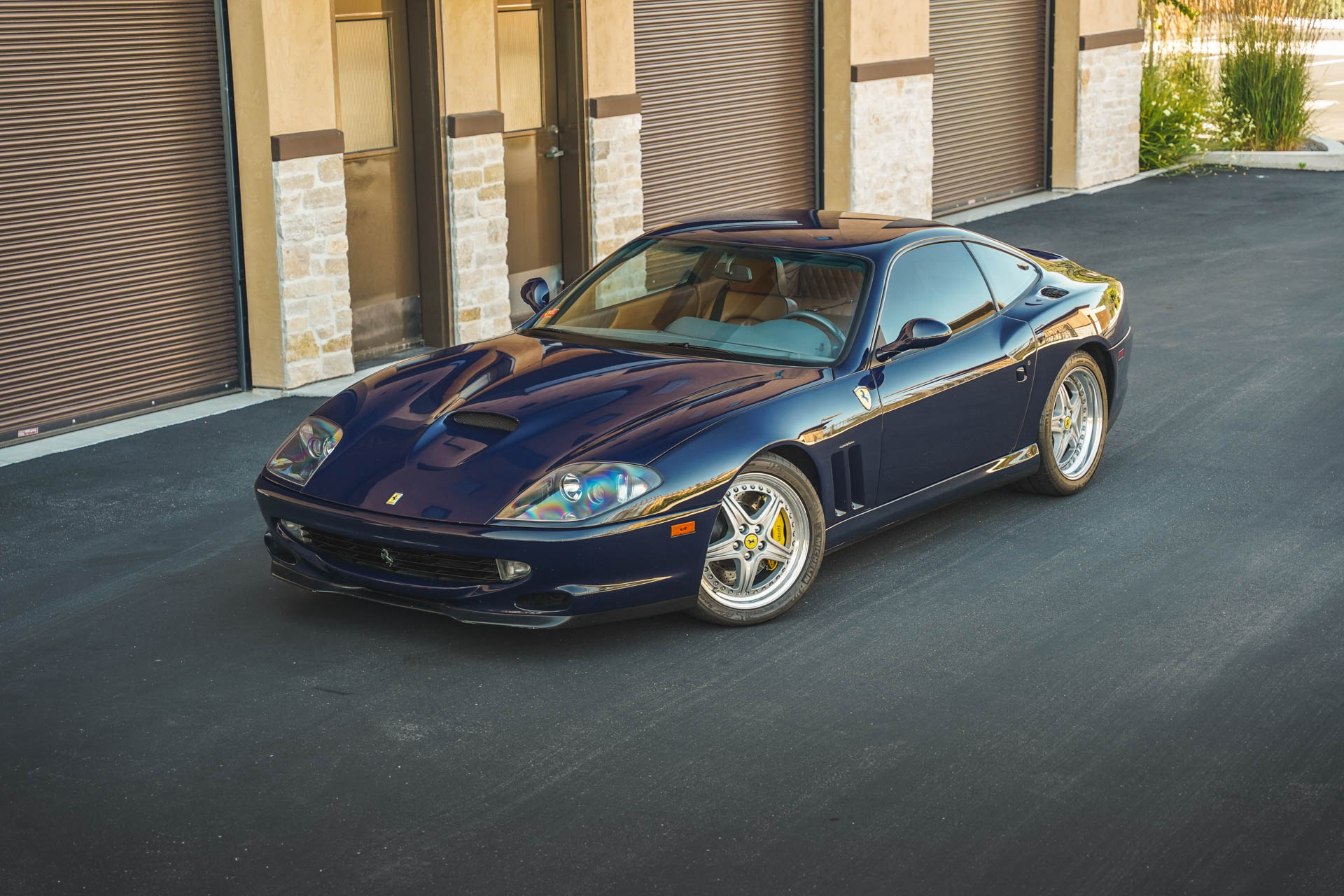 Optional 18″ modular wheels are mounted with 255/40 front and 295/35 rear Michelin Pilot Sport tires. The car is equipped with the Fiorano handling package, and braking is handled by yellow-finished Ferrari-branded calipers over cross-drilled rotors at all four corners.