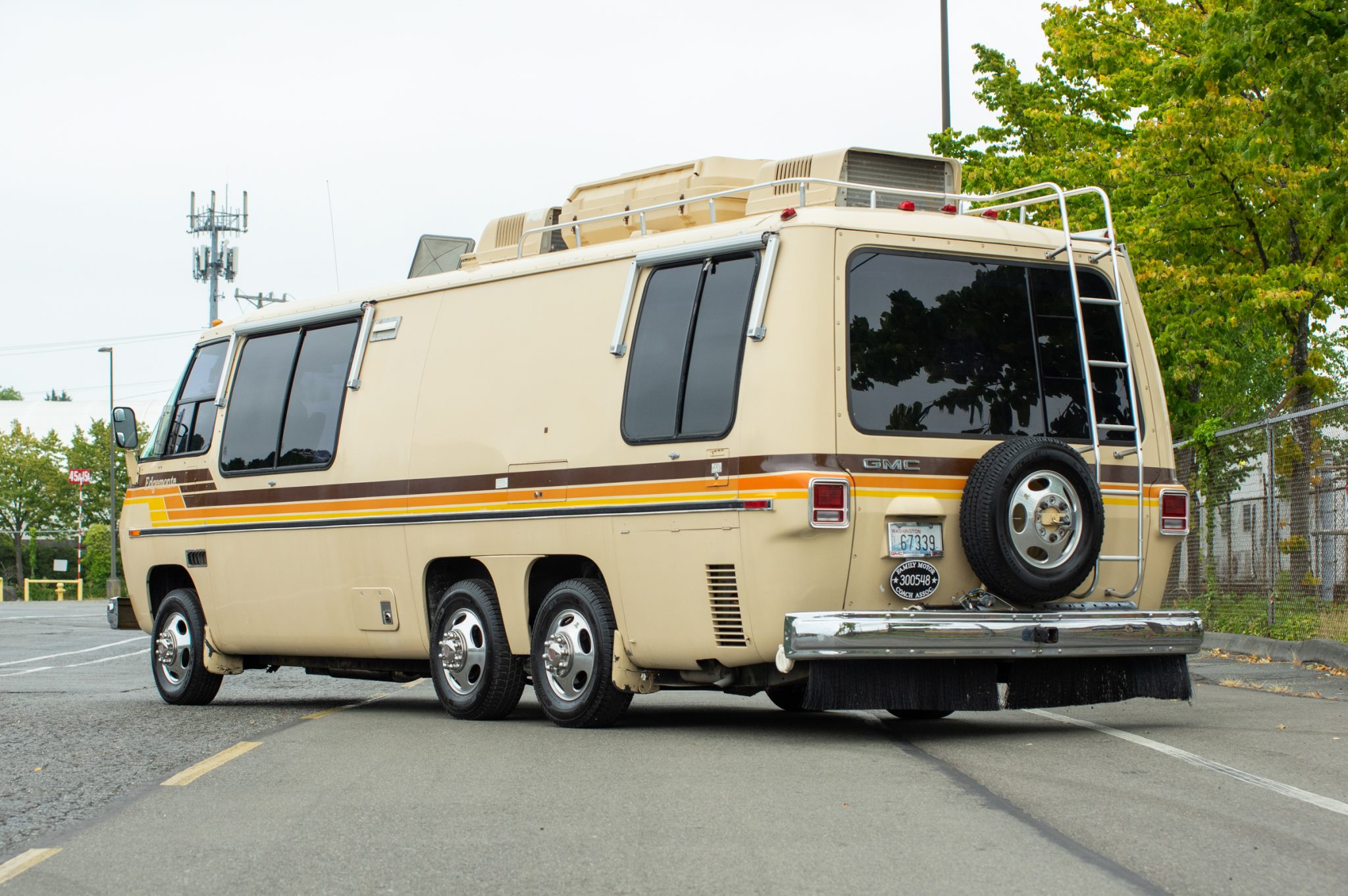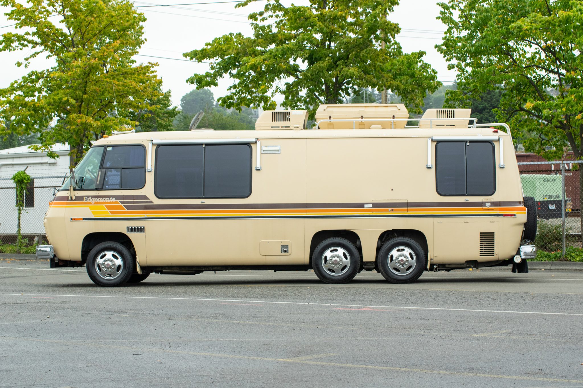 Alcoa 16″ alloy wheels wear 225/75 Michelin tires that show 2021 date codes, while a spare is mounted on the tail panel. Stopping power is from disc brakes, and a Micro Lock supplemental parking brake is fitted. The RV is equipped with front and rear sway bars as well as an air-adjustable rear suspension system that is controlled from a panel on the dashboard. A CV boot was replaced in preparation for the sale, and work performed under prior ownership is said to have involved revising the front suspension and installing rear disc brakes.