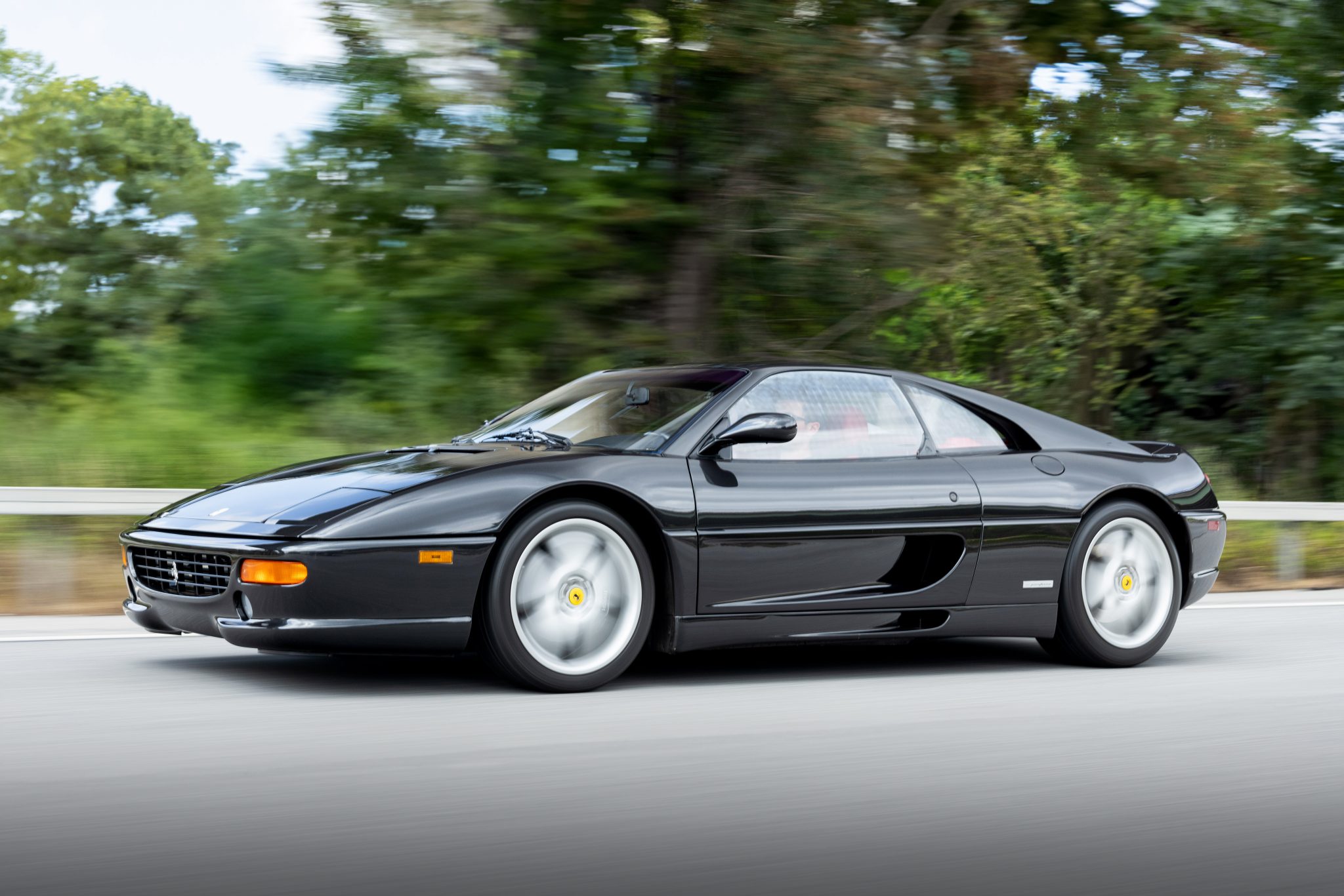 The 18″ five-spoke magnesium wheels are mounted with 225/40 front and 265/40 rear Continental ExtremeContact DWS06 tires that show 2020 date codes. Ferrari-branded brake calipers are mounted over ventilated discs at each corner.