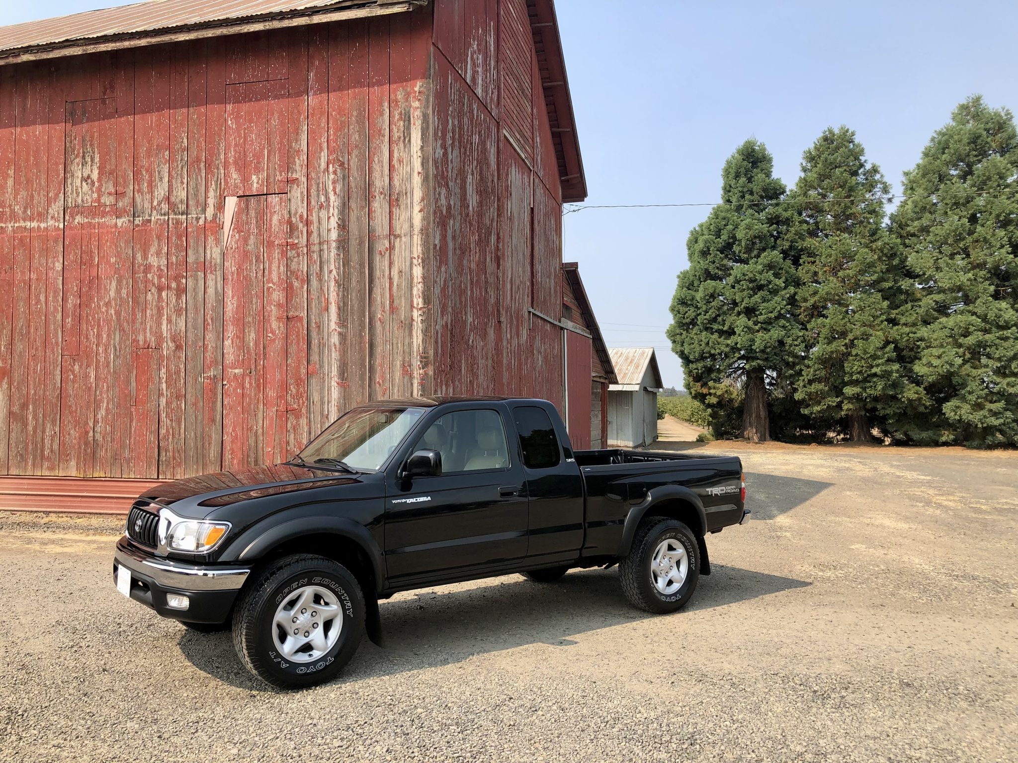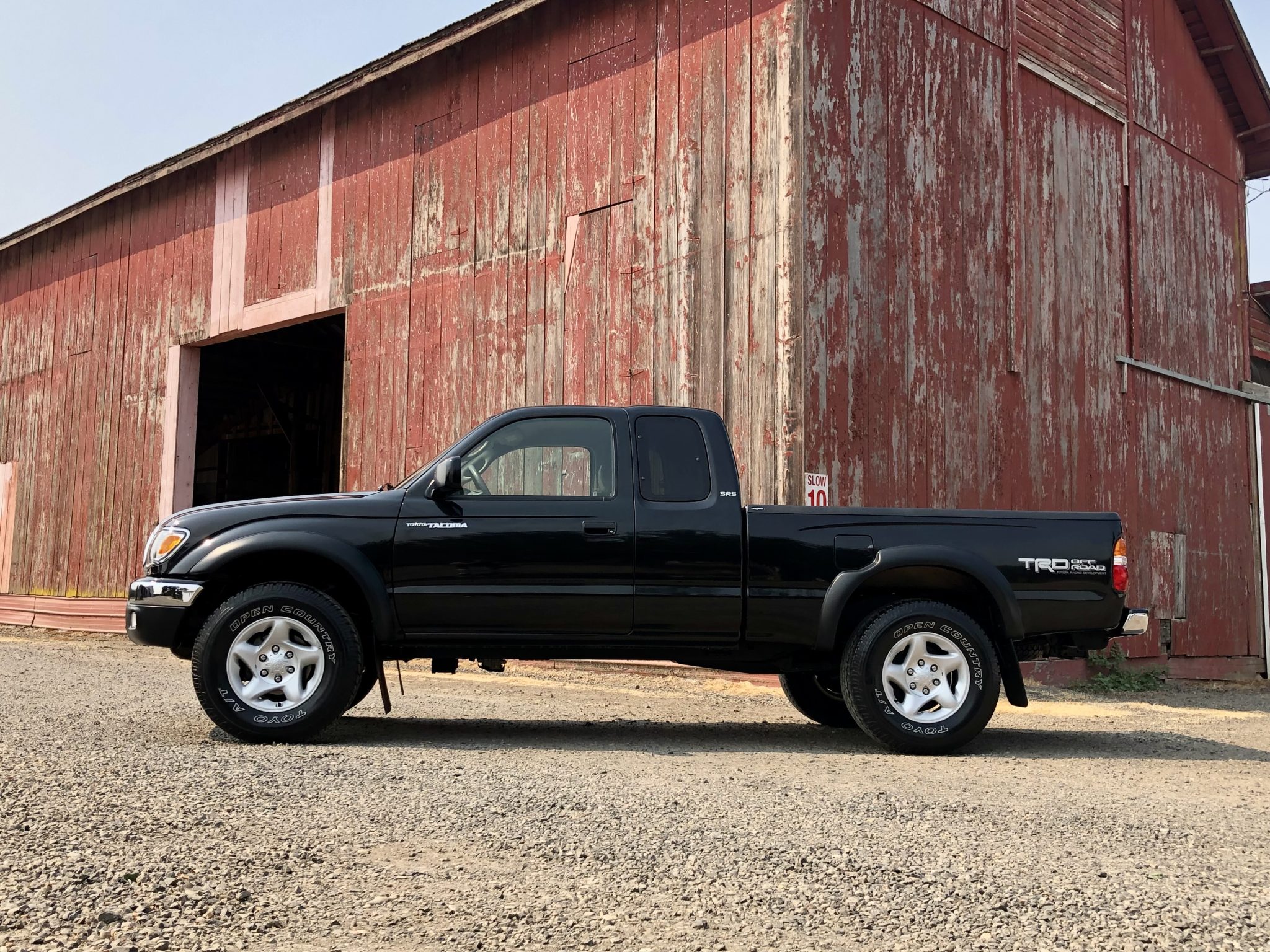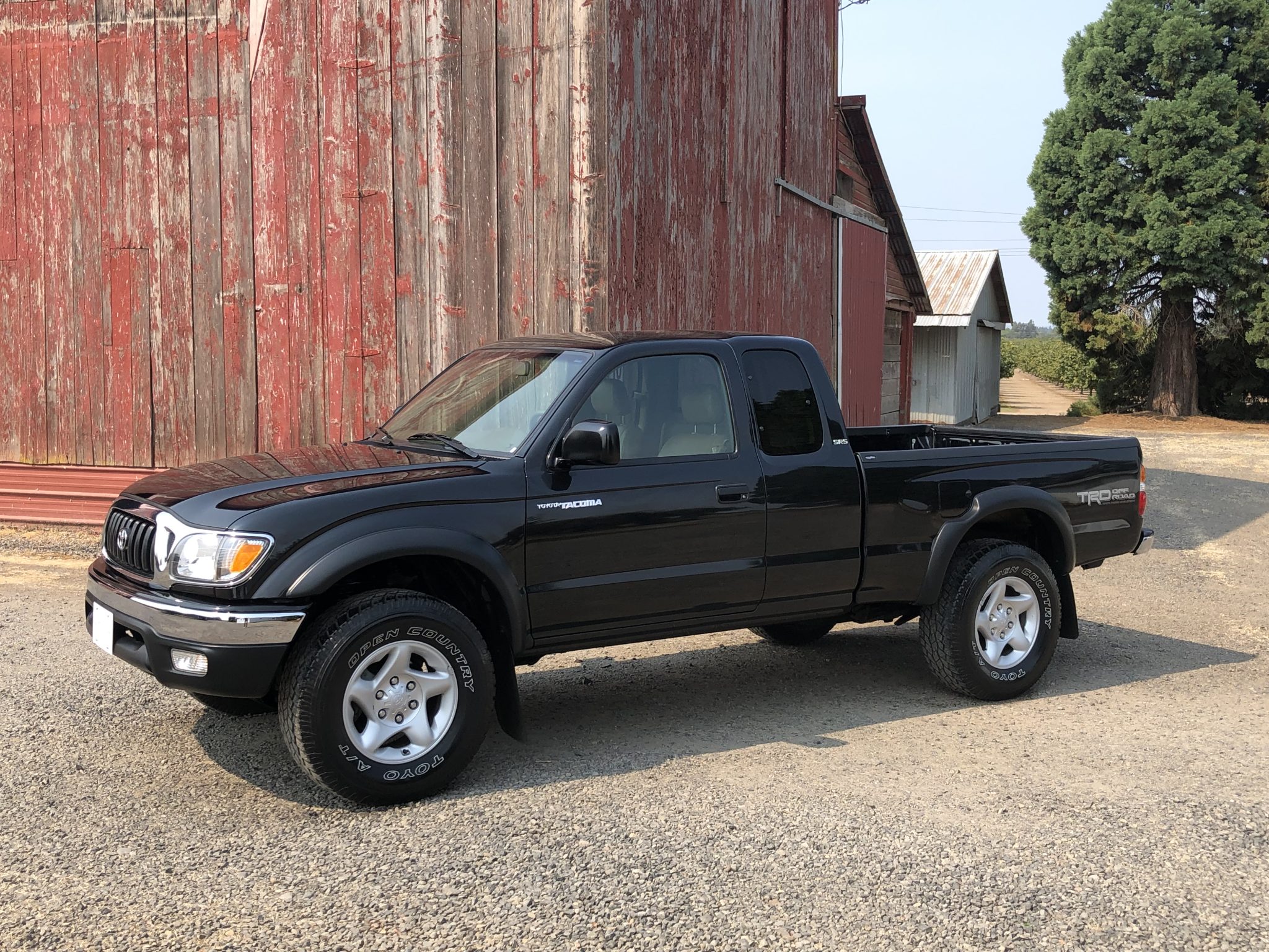The 16″ five-spoke alloy wheels are mounted with Toyo AT Open Country tires. The TRD Off-Road Package added an off-road suspension with Tokico shock absorbers. Braking is handled by front discs and rear drums. The seller states the front brake rotors were resurfaced in April 2023.