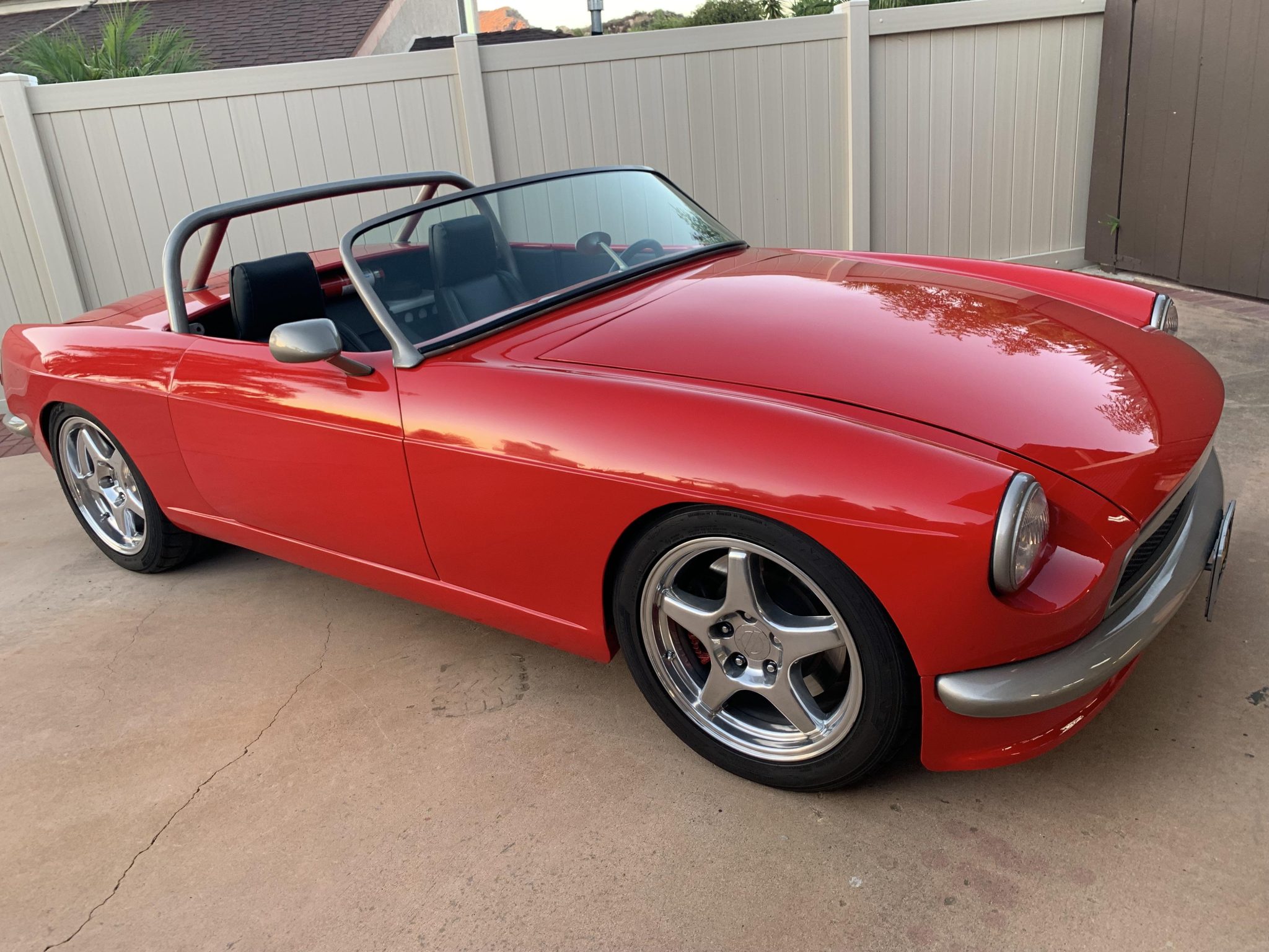 Polished 17” ZR1-style wheels are mounted with 275/40 front and 315/35 rear Nitto NT05 tires. The car is equipped with power steering as well as C4 Corvette disc brakes with dual vacuum-assisted master cylinders. A C4 Corvette suspension is mounted to custom-fabricated front and rear subframes incorporated into the monocoque. The suspension also includes a quick ratio steering rack, polyurethane bushings, QA1 adjustable coilovers, and a custom front sway bar with spherical bearing links.