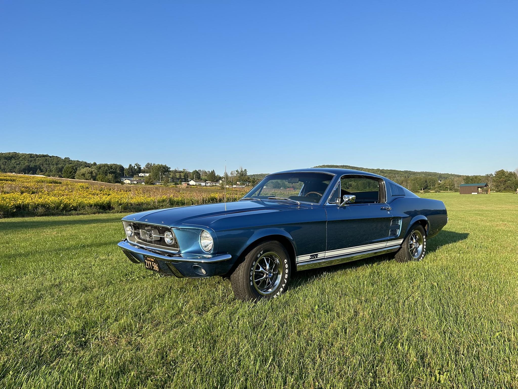 Styled steel 14″ wheels with blue Mustang center logos are mounted with 205/70 Goodyear Eagle ST tires. Braking is handled by power-assisted front discs and rear drums.