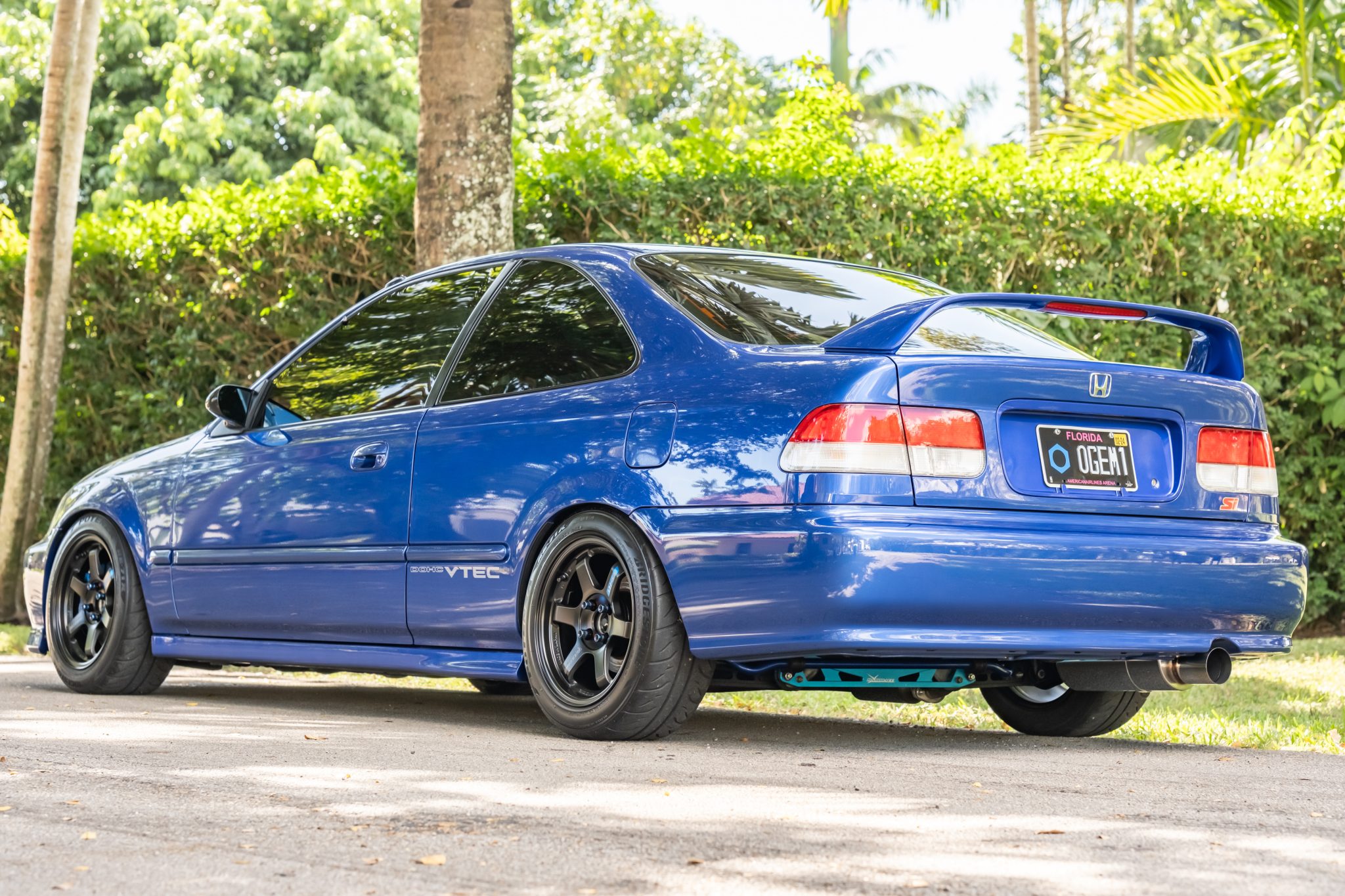 Rays Volk Racing TE37T 15″ forged wheels were mounted with 205/50 Bridgestone Potenza RE-71R tires and installed during the build. An extra set of Rays Volk Racing 16″ wheels and Bridgestone Potenza tires are also included in the sale. Spoon front calipers and larger rotors have been added. Moton three-way coilovers with remote reservoirs and Mugen front and rear strut tower braces were installed during the work in 2020, along with the following Hardrace components: