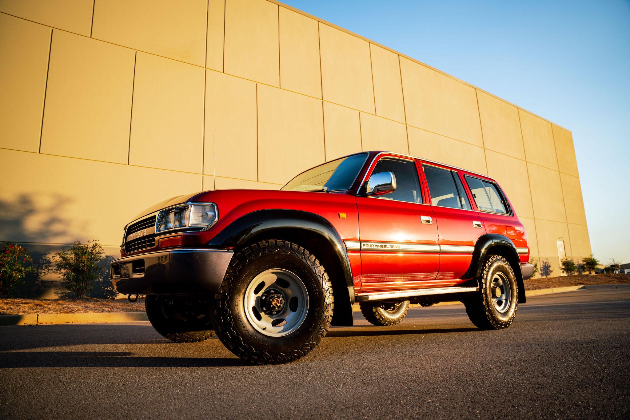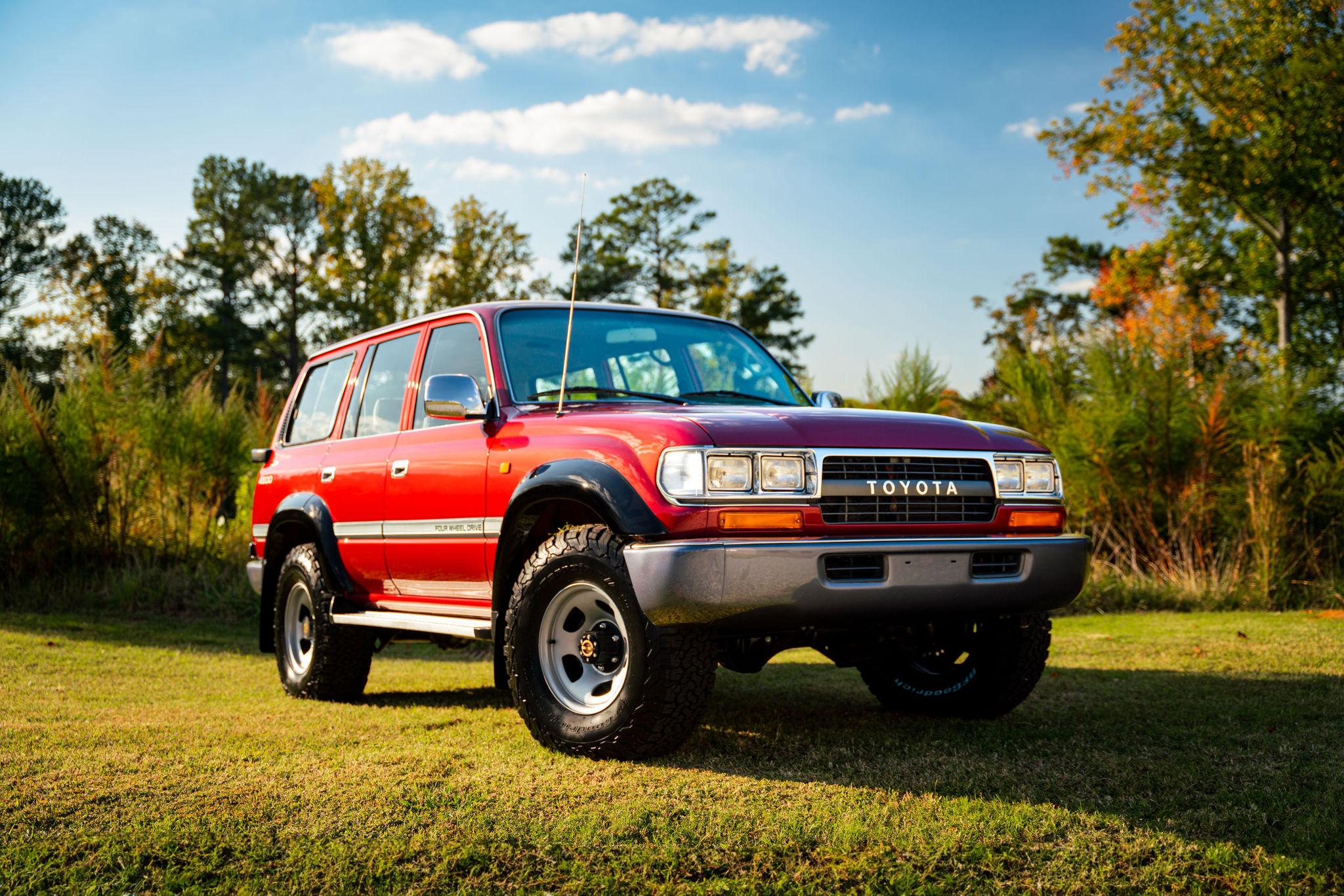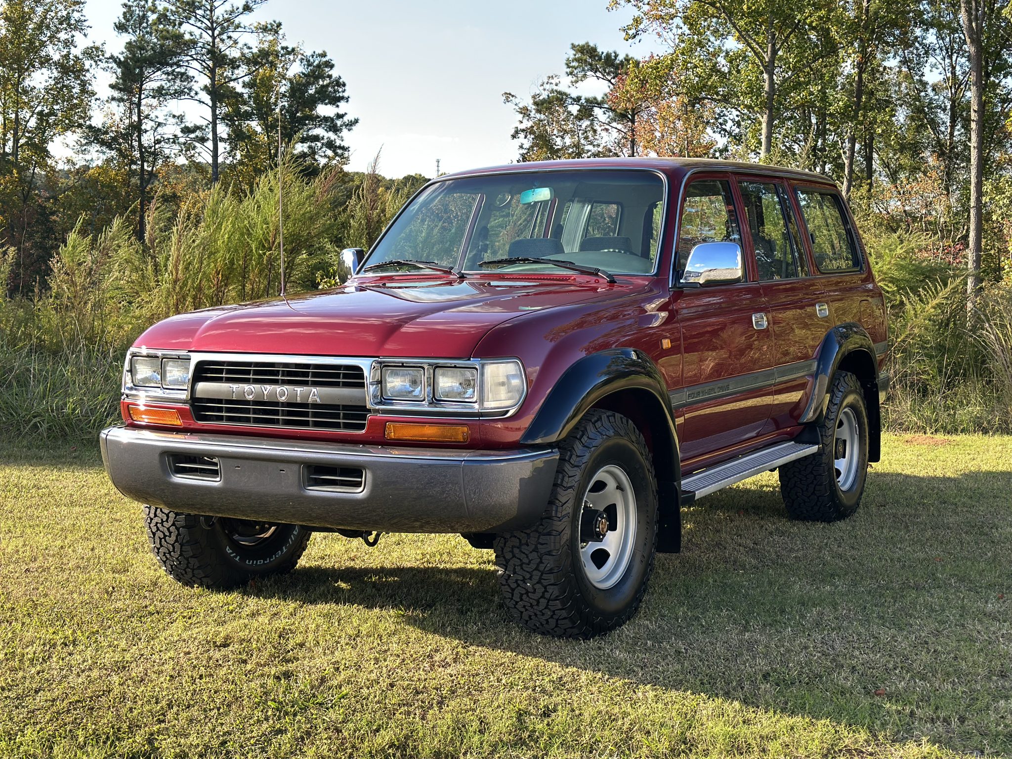 Silver-finished 16″ steel wheels were reportedly mounted with 285/75 BFGoodrich All-Terrain T/A KO2 tires, and a matching spare is affixed to a swing-away carrier at the rear. The truck is equipped with manually locking front hubs. Stopping power is provided by front disc brakes and rear drum brakes, which were reportedly serviced in 2023.