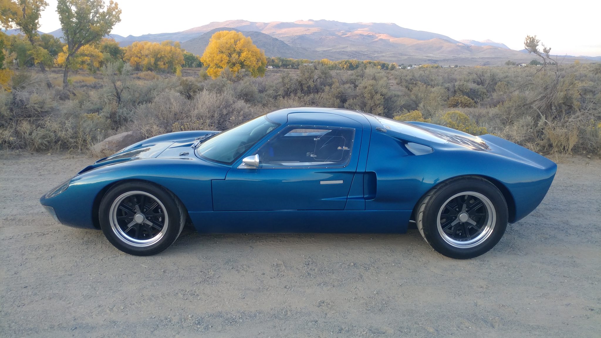 Staggered Halibrand-style 16″ wheels measure 8″ in width up front and 9.5″ out back, wear three-ear spinners, and are mounted with Toyo Proxes R888 measuring 225/50 in the front and 255/50 in the rear. The semi-monocoque chassis was designed and assembled by the seller and features square tube steel framing and an integrated roll cage as well as Aldan American adjustable coilovers, heim joint control arms, and a Nissan 240Z-sourced steering rack. Braking is handled by Wilwood six-piston front and four-piston rear calipers fitted over 12-inch slotted rotors utilizing Tilton twin master cylinders with bias adjustment. The seller notes that sway bars are not installed but mounts are present.