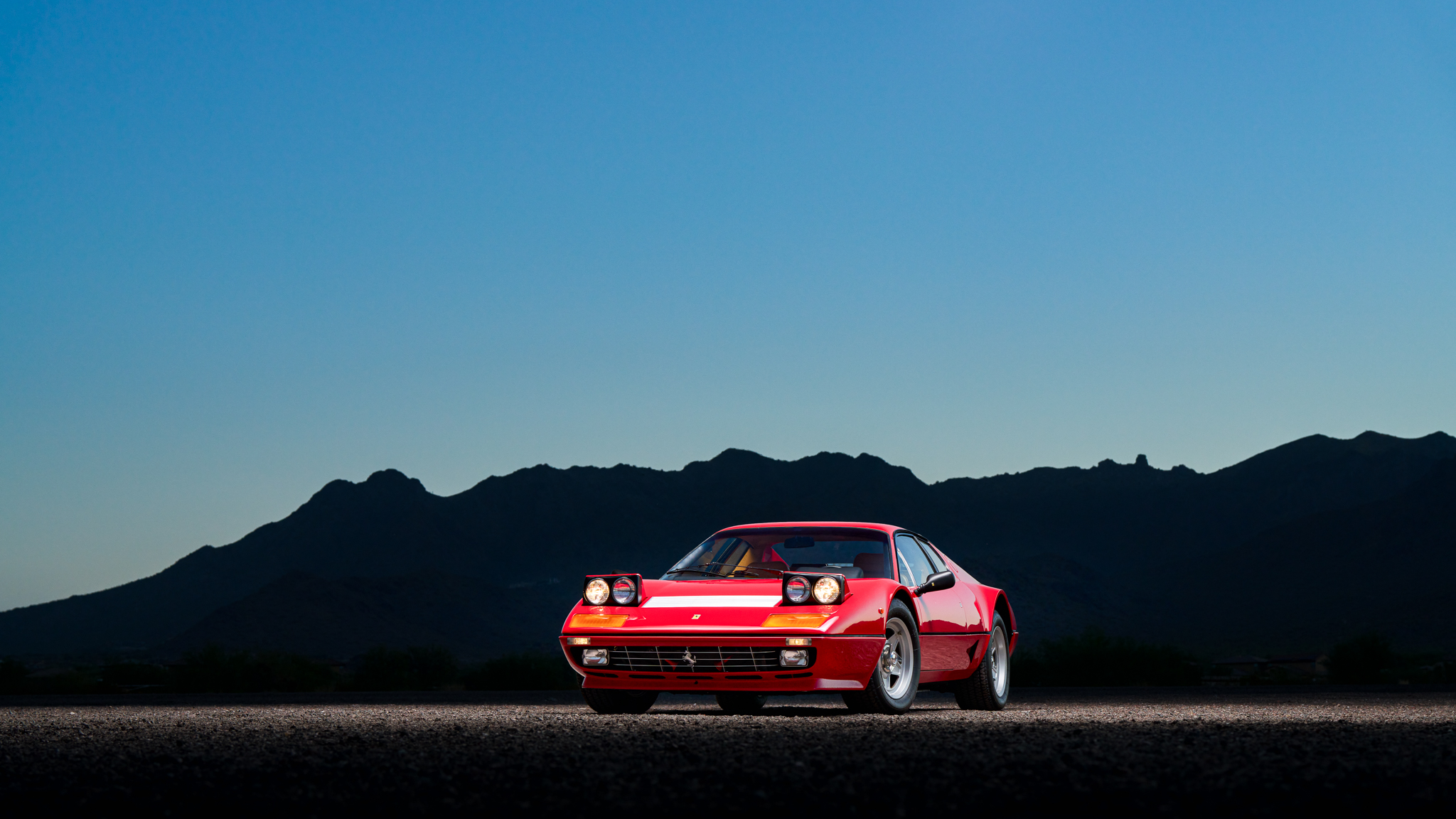 This example is finished in Rosso Corsa with matching lower panels and features pop-up headlights, fog lights, a front spoiler, NACA side ducts, and quad exhaust outlets.