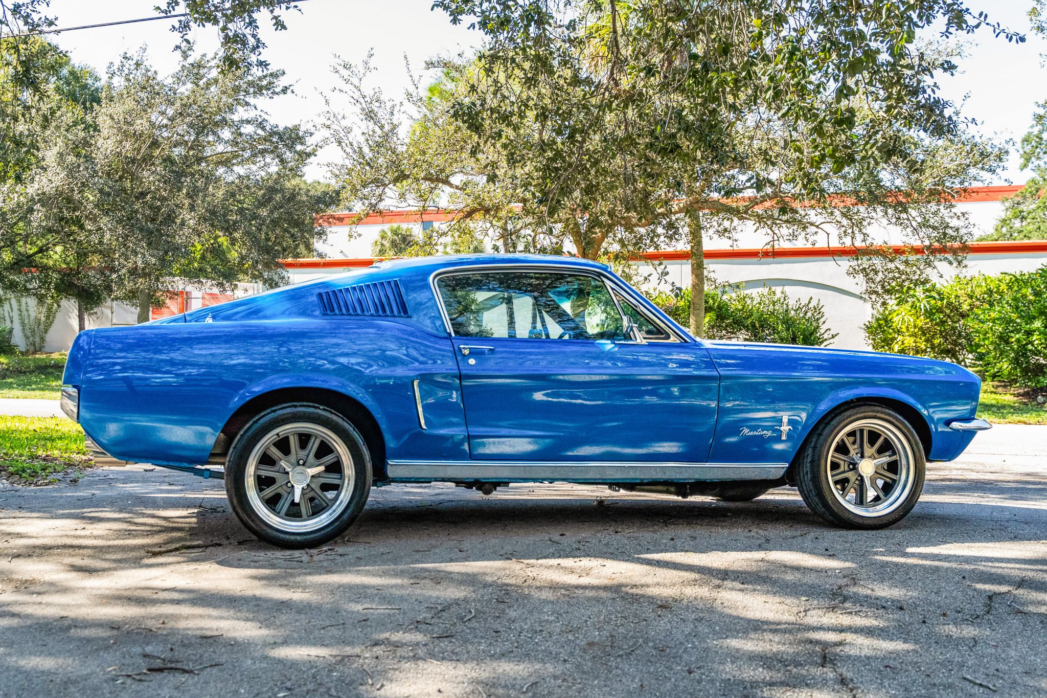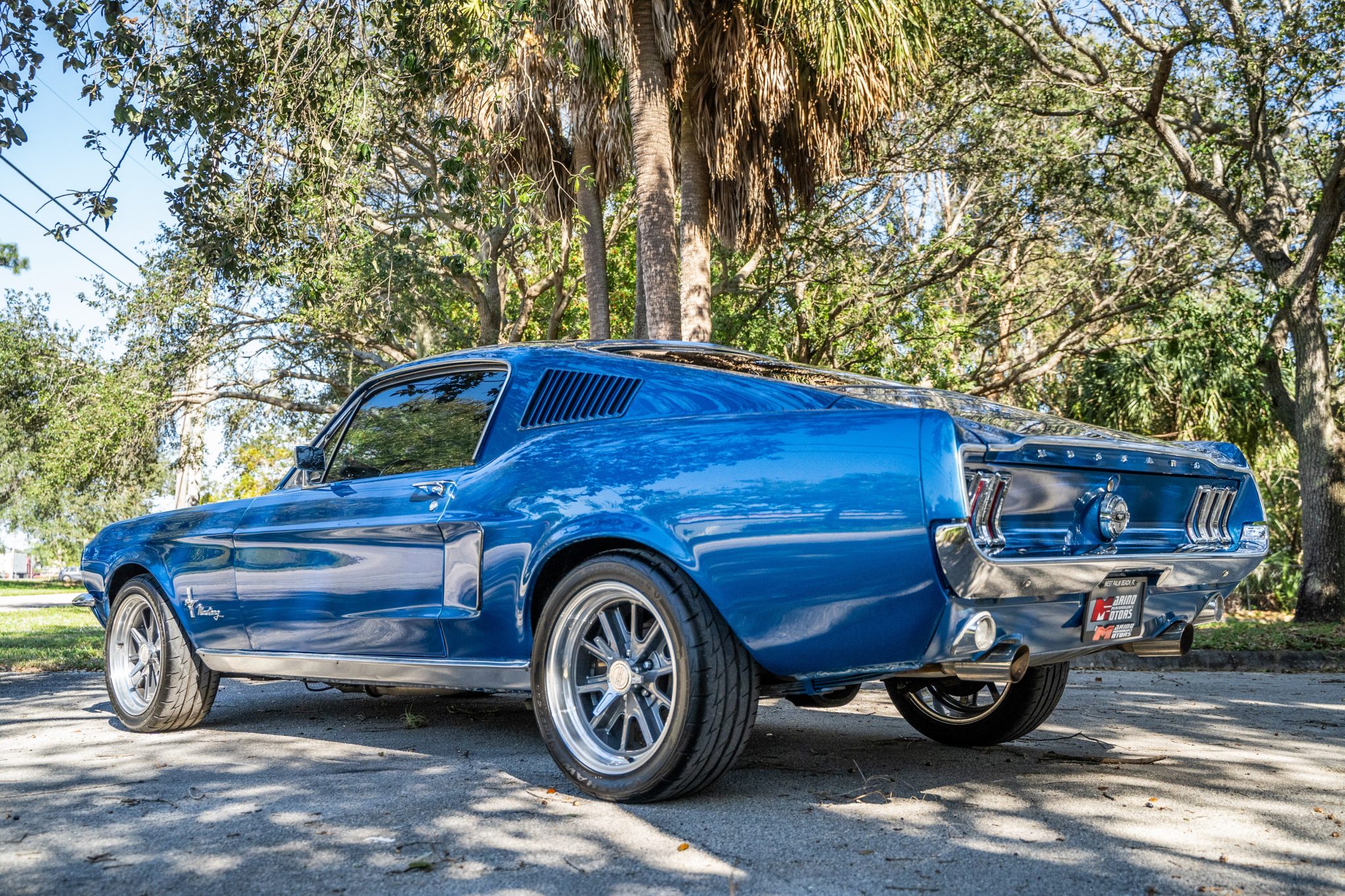 Shelby-style 17″ American Racing wheels are mounted with 245/40 front and 255/40 rear Firestone Firehawk Indy 500 tires. The front shock towers have been eliminated, and the factory front suspension has been replaced with an aftermarket crossmember, tubular control arms, a sway bar, and adjustable coilovers. The car is also equipped with aftermarket front disc brakes and power rack-and-pinion steering as well as adjustable QA1 rear shocks.