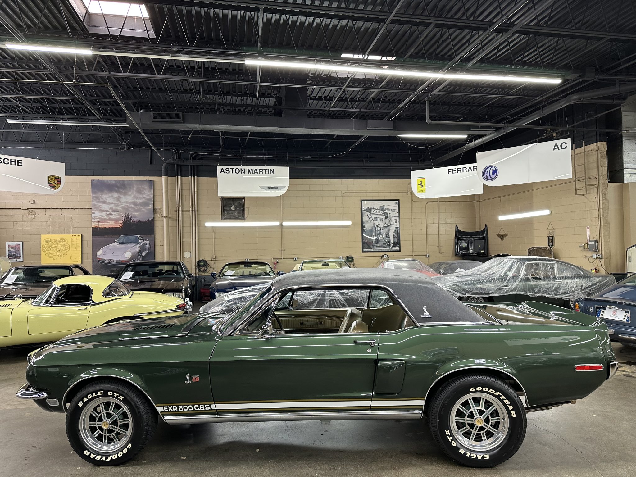 The 15″ cast-alloy 10-spoke wheels feature Highland Green accents with polished outer lips and are mounted with 235/60 front and 255/60 rear Goodyear Eagle GTE tires. A matching spare is stowed in the trunk. The car features a coil-sprung independent front suspension and a live rear axle with leaf springs and Koni shocks. Stopping power is provided by four-wheel disc brakes.