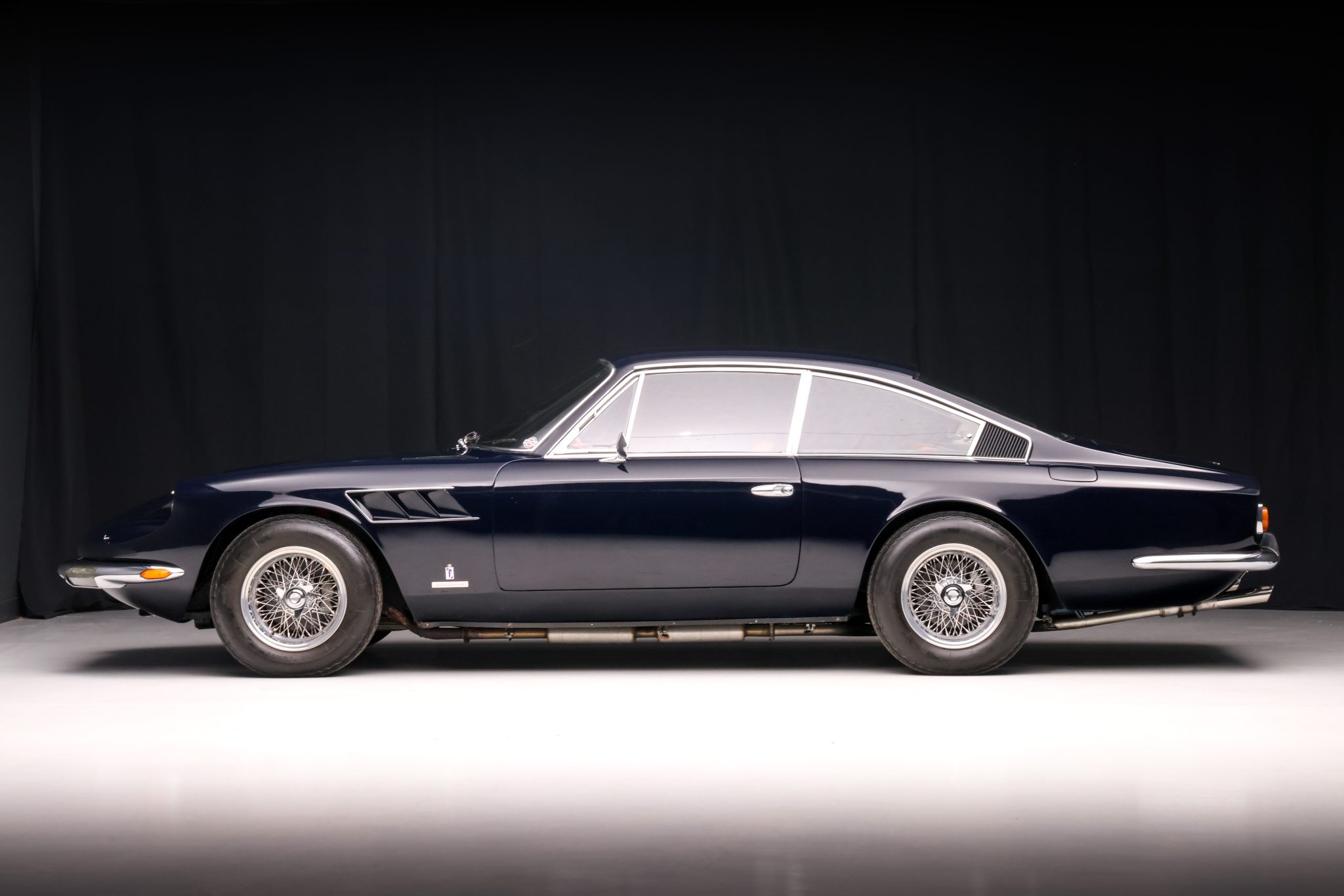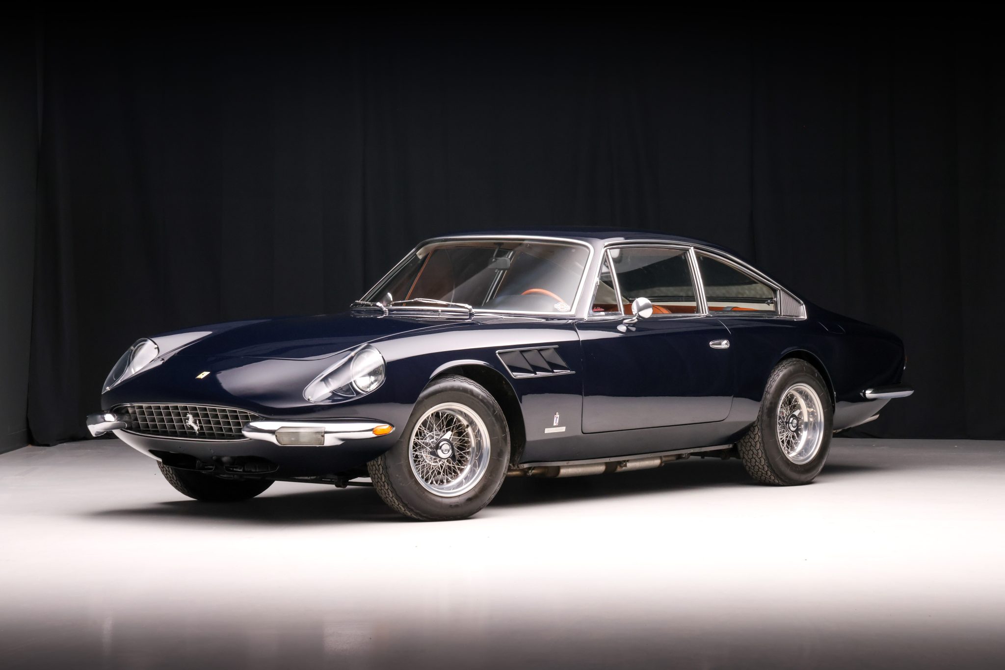 The Borrani wire wheels are secured by three-eared knock-off hubs and are wrapped in 215/70VR15 Michelin XWX tires showing 2018 date codes. The 365 GT 2+2 model was the first Ferrari 2+2 offered with an independent rear suspension, and power-assisted steering was equipped from the factory. Stopping power is provided by servo-assisted four-wheel ventilated disc brakes.