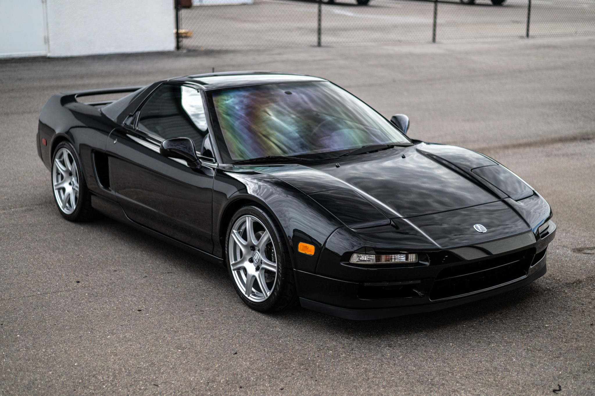 The 17″ and 18″ Science of Speed 2002-style forged wheels are mounted with 215/40 front and 255/35 rear Dunlop Direzza tires. The car features a four-wheel double-wishbone suspension with front and rear stabilizer bars, and braking is handled by NSX-branded calipers over drilled Brembo rotors at each corner. The ABS was revised using components sourced from a Honda S2000, per the seller, who notes that Comptech and Koni suspension components have been added in addition to an NSX Type-R front stabilizer bar. The steering rack is said to have been replaced in March 2023.