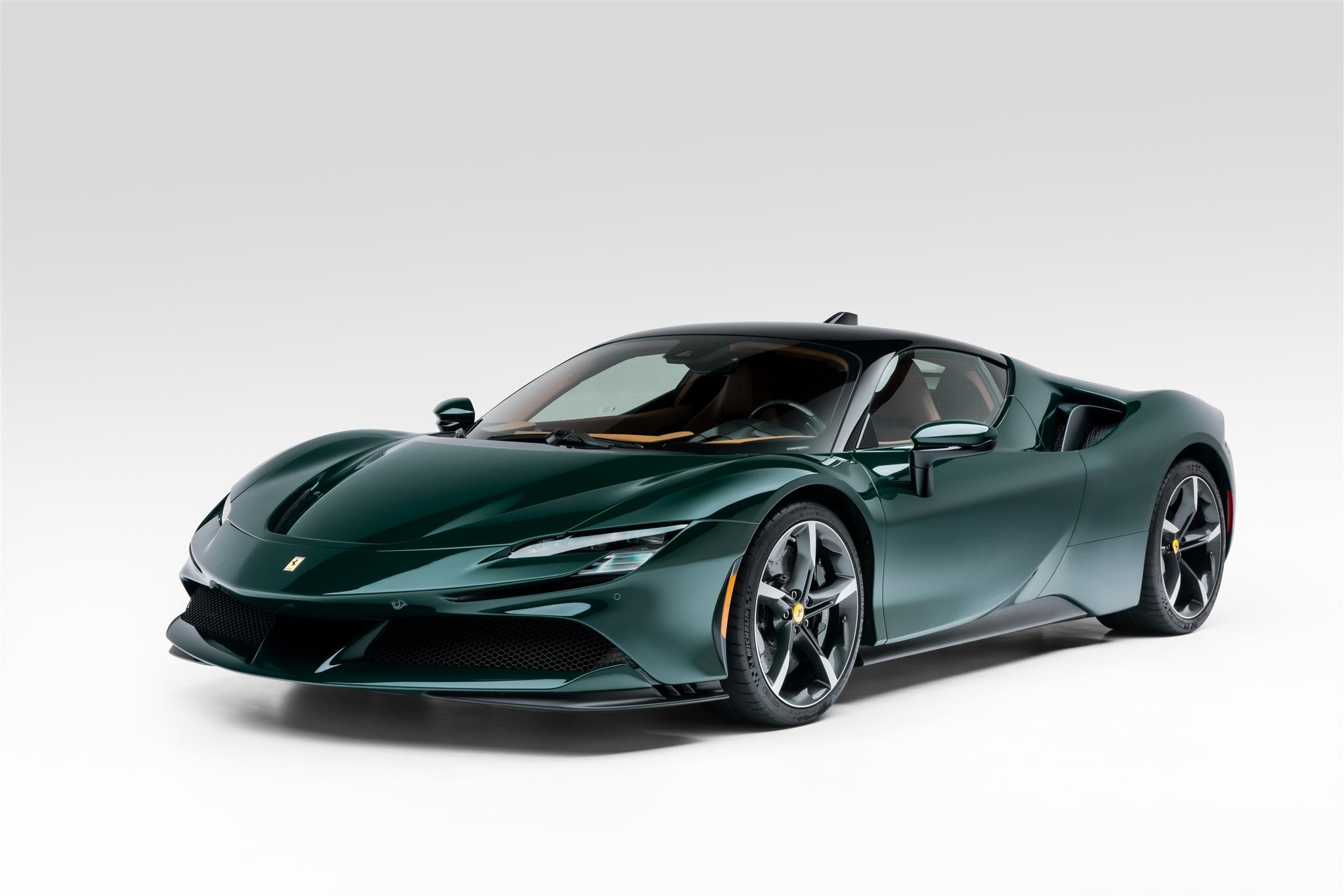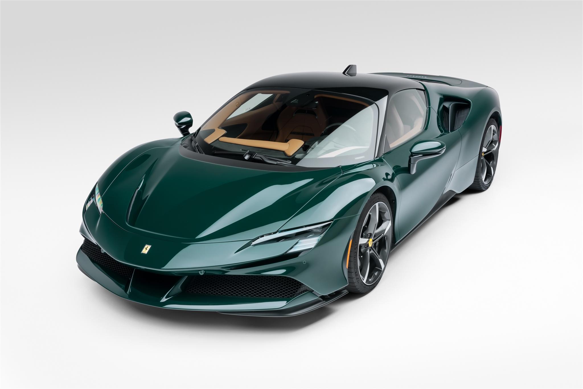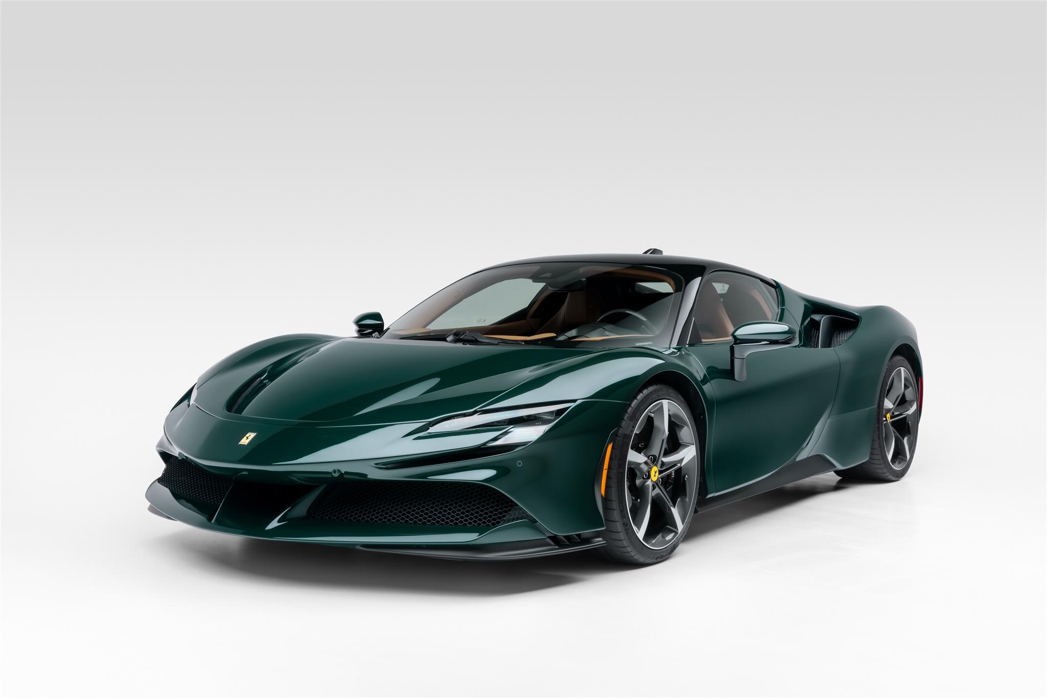 The 20″ forged diamond wheels are mounted with 255/35 front and 315/30 rear Michelin Pilot Sport Cup 2 tires, and one tire was repaired in August 2023. The SF90 Stradale features an aluminum chassis as well as a magnetorheological suspension. The electronic Side Slip Control (eSSC) system can distribute torque to all four wheels while the electric traction control system (eTC) can deliver power to individual corners. A suspension lift system was optioned from the factory. The regenerative braking system is controlled by a brake-by-wire system that utilizes ABS and splits braking between the hydraulic system and the electric motors. Black-painted calipers over carbon-ceramic rotors are fitted at all four corners.
