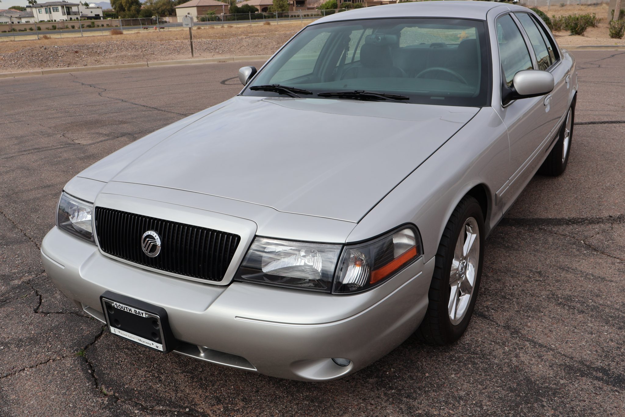 Polished 18″ five-spoke forged wheels are mounted with 235/50 BFGoodrich front and 245/55 Continental rear tires. Braking is provided by four-wheel disc brakes with dual-piston front calipers, and the Marauder came standard with speed-sensitive variable-assist power steering, Tokico monotube shocks, and self-leveling rear air suspension.