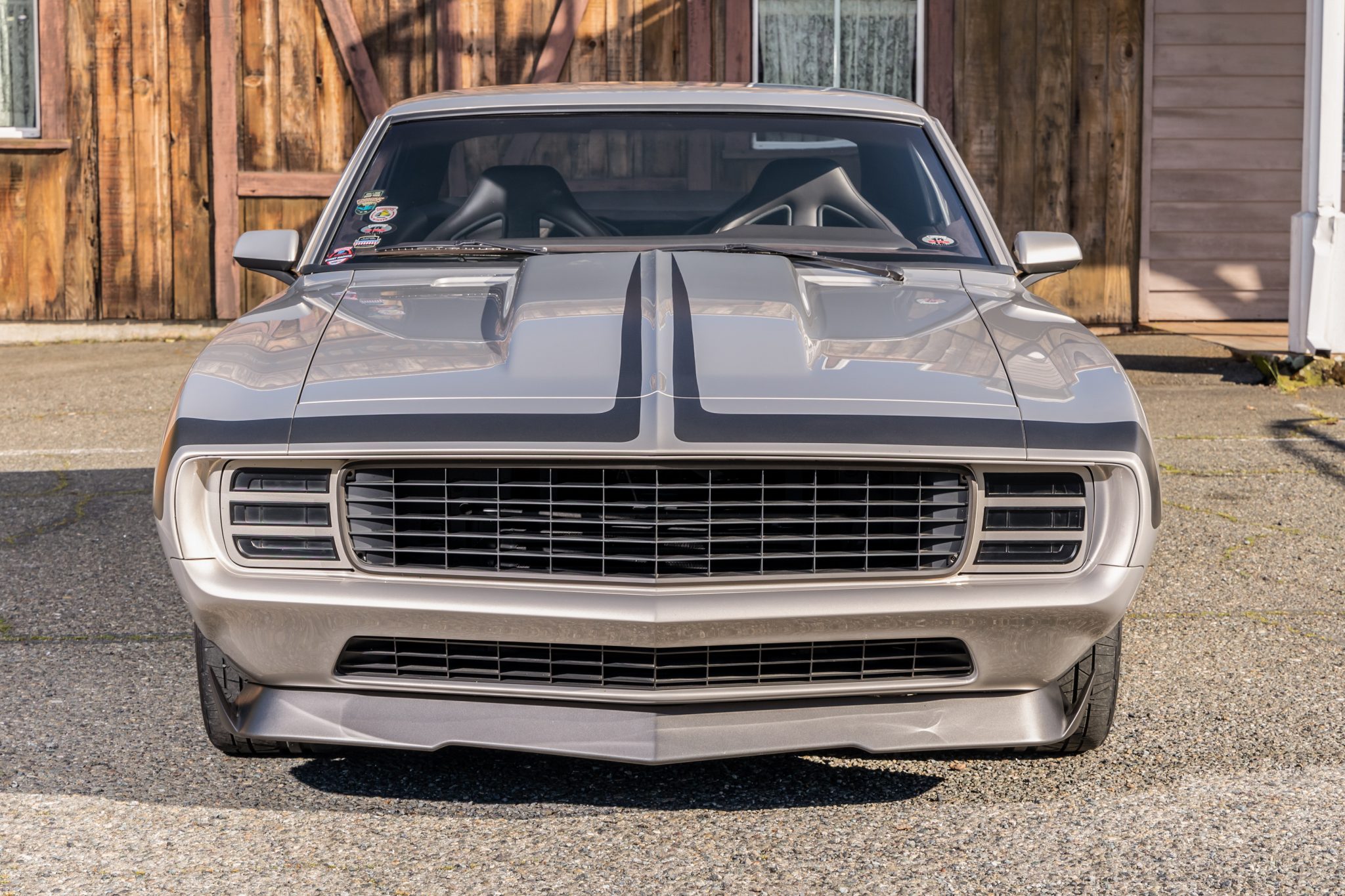 The Roadster Shop Spec chassis includes coilover front suspension, four-link coilover rear suspension, power steering, and Wildwood disc brakes with six-piston calipers all around. The wheels are from Billet Specialties and measure 18×10” in front and 19×12” out back. Tires are 275/35 front and 325/30 rear Nitto Invos.