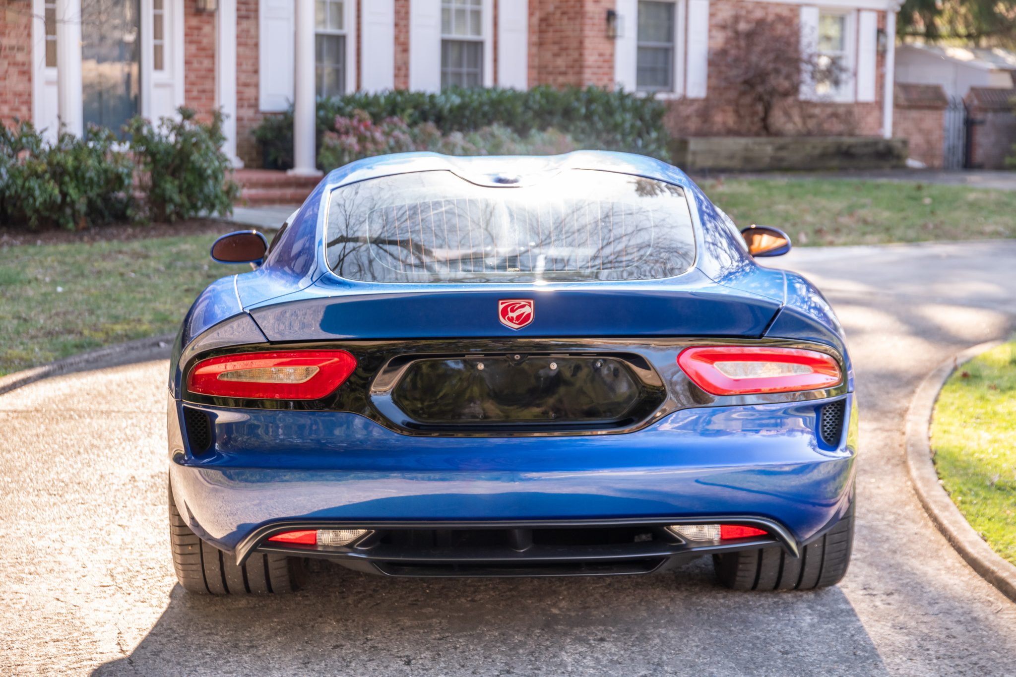 Polished 18″ and 19″ Venom alloy wheels are mounted with Michelin Pilot Sport 4S tires said to have been installed in December 2023. The car is equipped with adjustable Bilstein shocks, and stopping power is provided by red-finished Viper-branded Brembo calipers fitted over ventilated rotors at each corner.