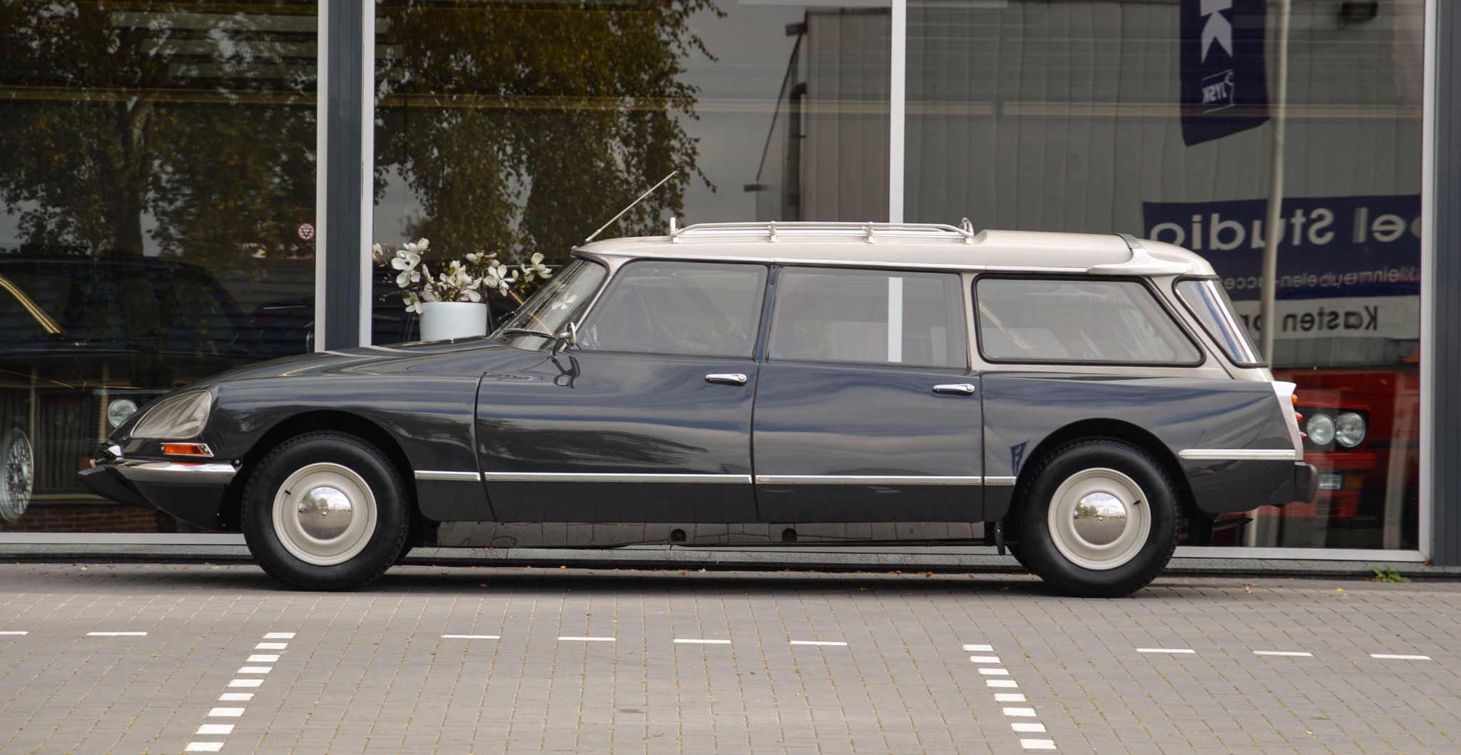 The 15” wheels were refinished and fitted with chrome caps. New Retro tires were fitted at all four corners and the rear suspension spheres for the self-leveling system were rebuilt by the seller.