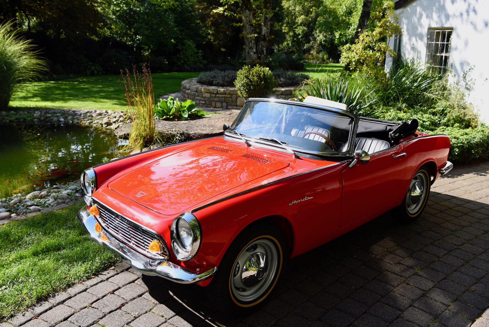 A new soft top was fitted during the restoration and is shown above. Factory steel wheels have been powder coated by the seller and are fitted with new white wall tires and NOS hubcaps.