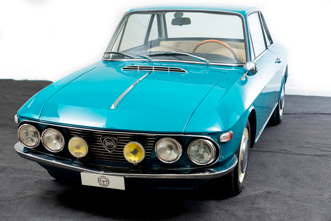 Cream-colored 14″ steel wheels with polished Lancia hubcaps are wrapped in 145-series Michelin tires. The suspension bushings were replaced and the steering box was refurbished in early 2021.