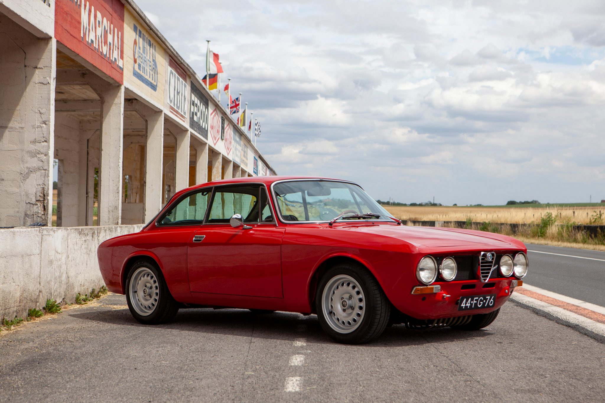 GTA-replica 15″ wheels are wrapped in 195/55 Pirelli Cinturato P1 tires. The ride height has been lowered and the car is equipped with Eibach suspension components and Koni dampers.