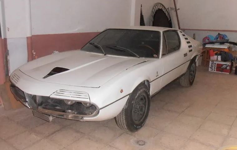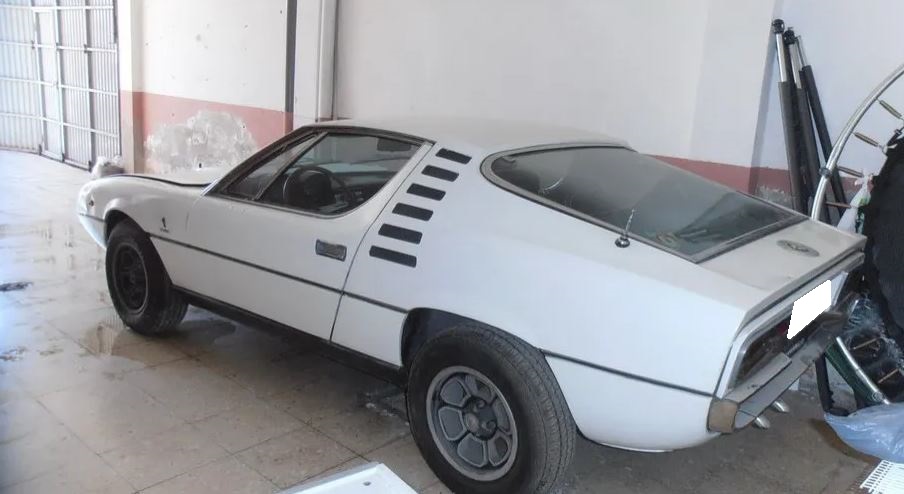 The car was originally finished in an orange metallic color and was repainted in white by the previous owner. It has been in storage for the last three decades, though the glass and trim pieces appear to be mostly intact. An extra windshield, gasket, and a set of exterior badging will be included.
