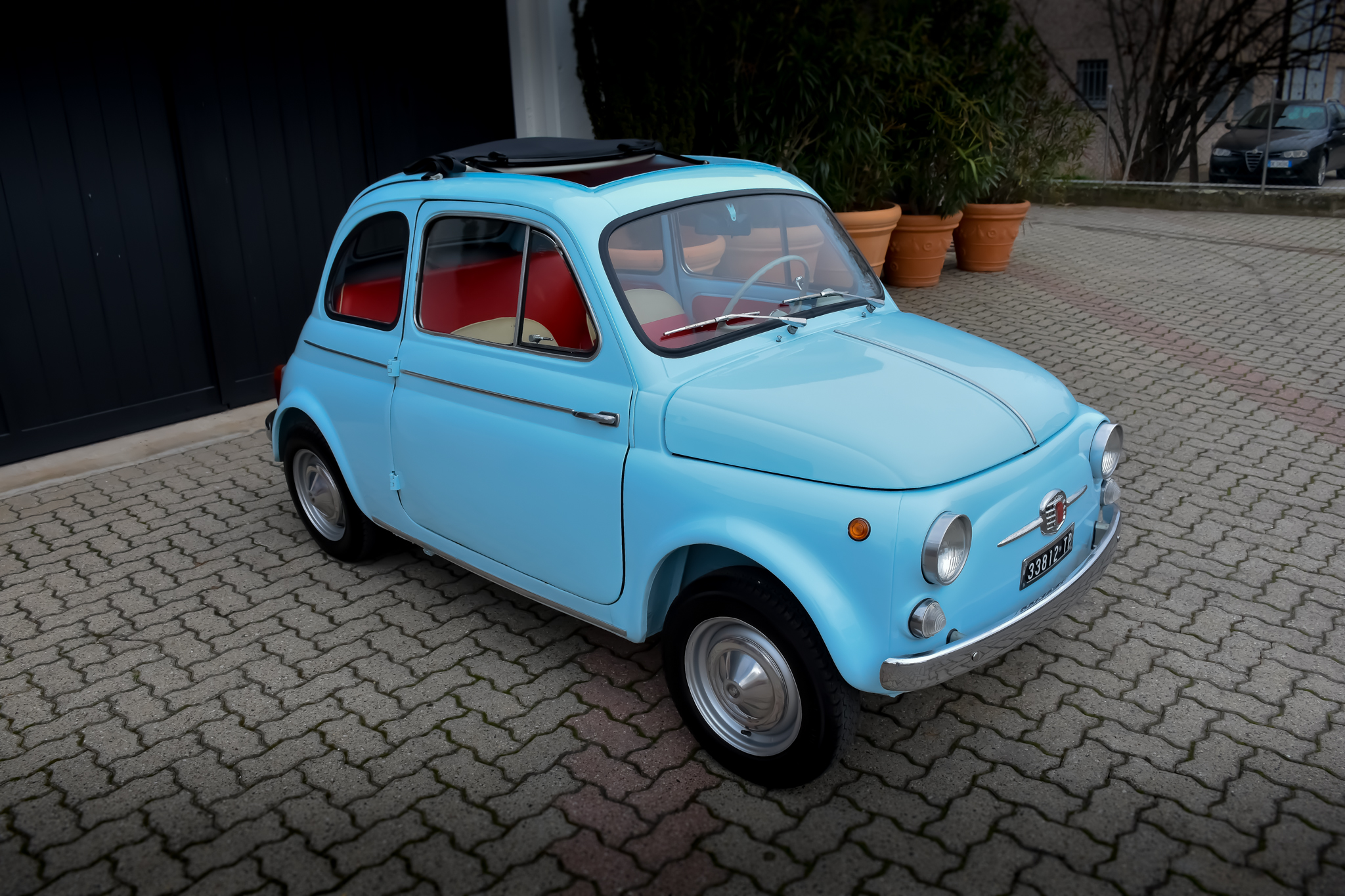 Silver-finished 12″ wheels are wrapped in 125-series Pirelli Cinturato CN54 tires. Braking is handled by four-wheel drums.