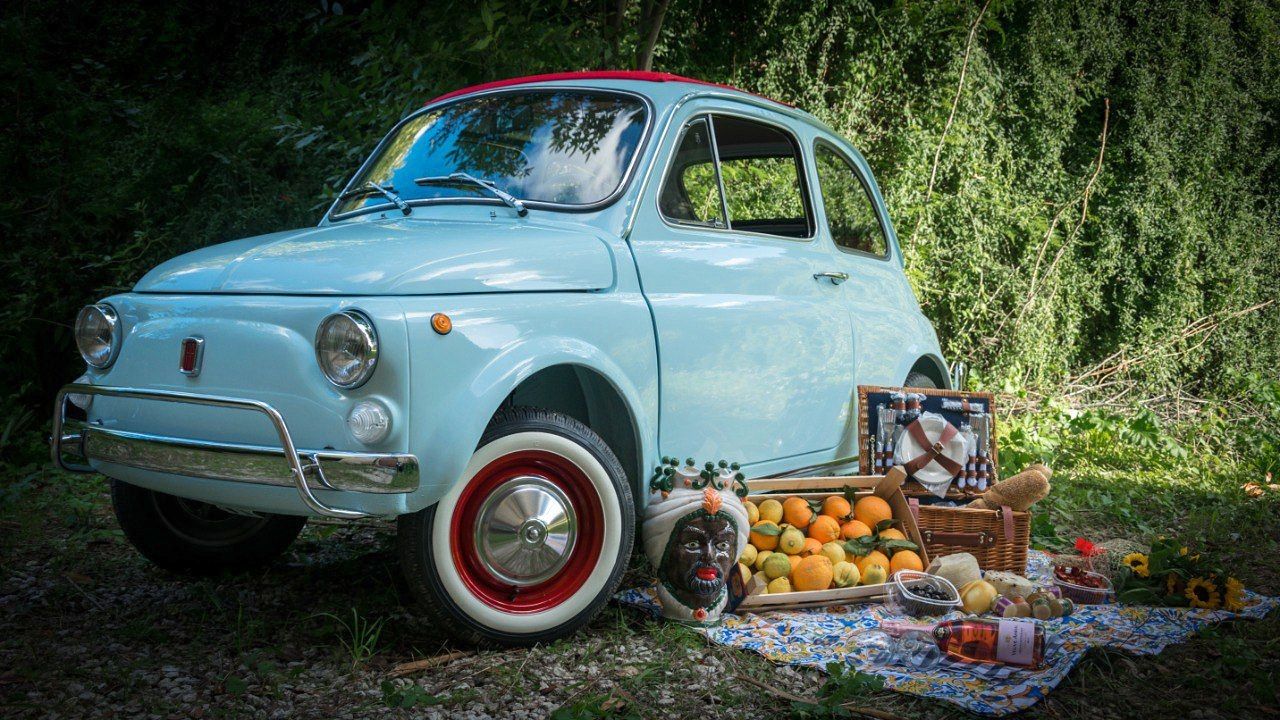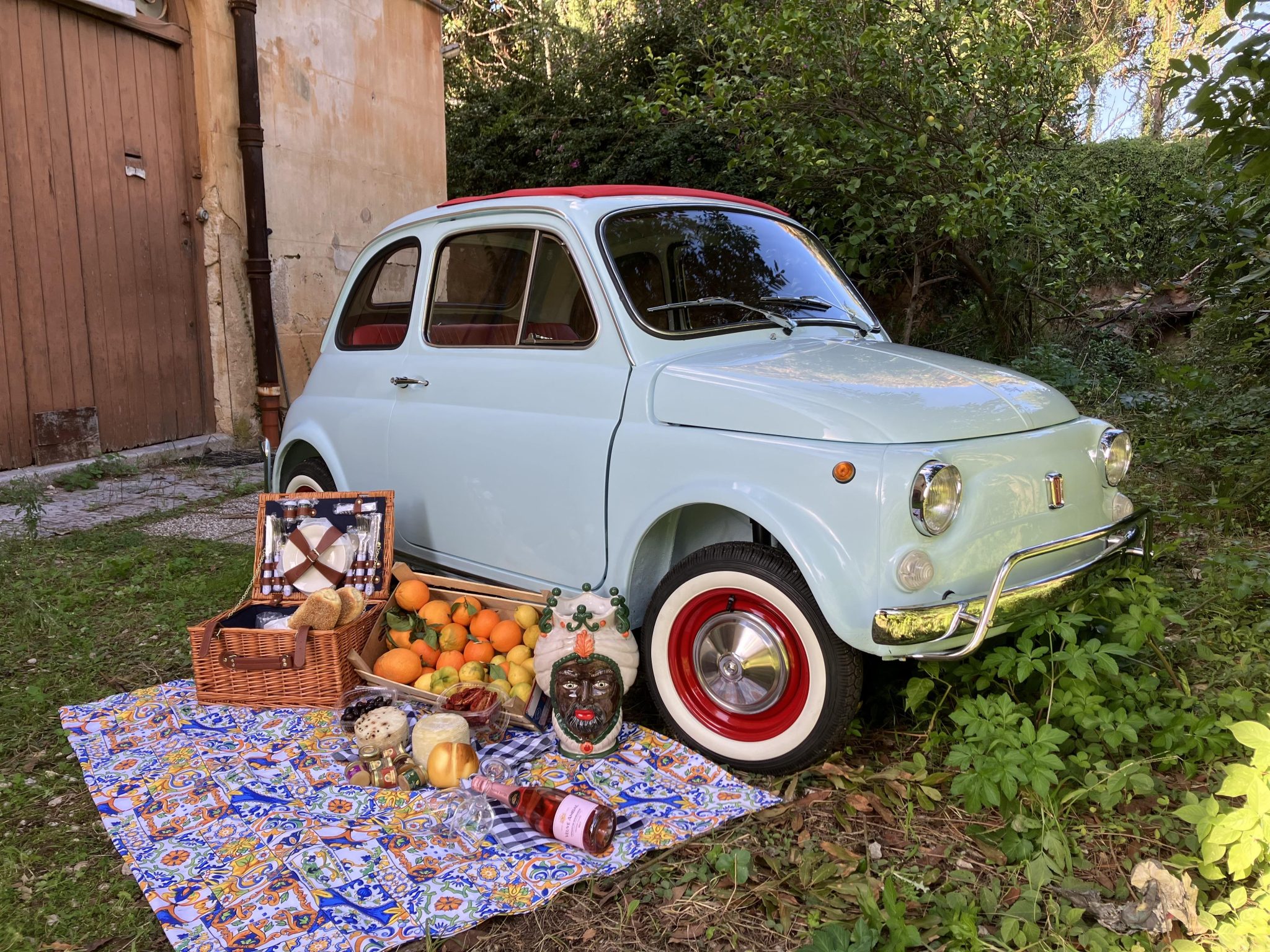 Red-finished 12″ steel wheels wear polished hubcaps and whitewall tires that are said to have been mounted during current ownership. The selling dealer notes the leaf springs and dampers were replaced. Stopping power is provided by four-wheel drum brakes, components of which were replaced during the refurbishment.