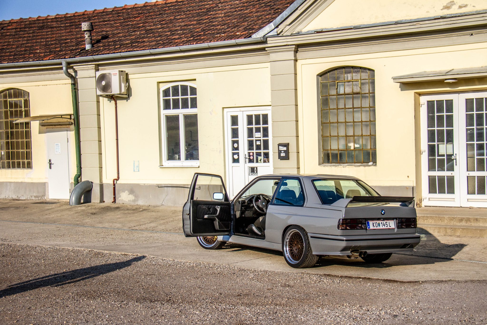 Gold-finished 18″ wheels feature polished lips are mounted with 225/35 front and 255/30 rear Nangkang tires. The car is equipped with KW V3 coilovers, a front strut bar, and H&R front and rear sway bars. BMW Performance six-piston calipers and E46 M3 CSL rotors are fitted up front, while Porsche Cayenne calipers and Z4M rotors are equipped in the rear.