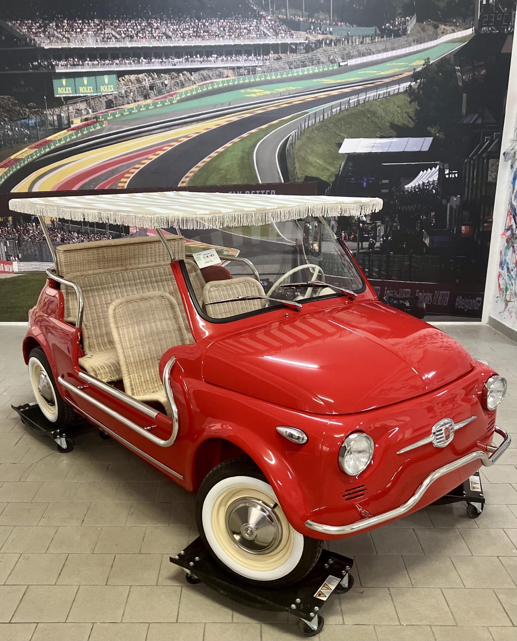 Beige-finished 12″ steel wheels wear polished hubcaps, and the tires are fitted with Atlas whitewall inserts. The suspension and four-wheel drum brakes were reportedly overhauled during the refurbishment.