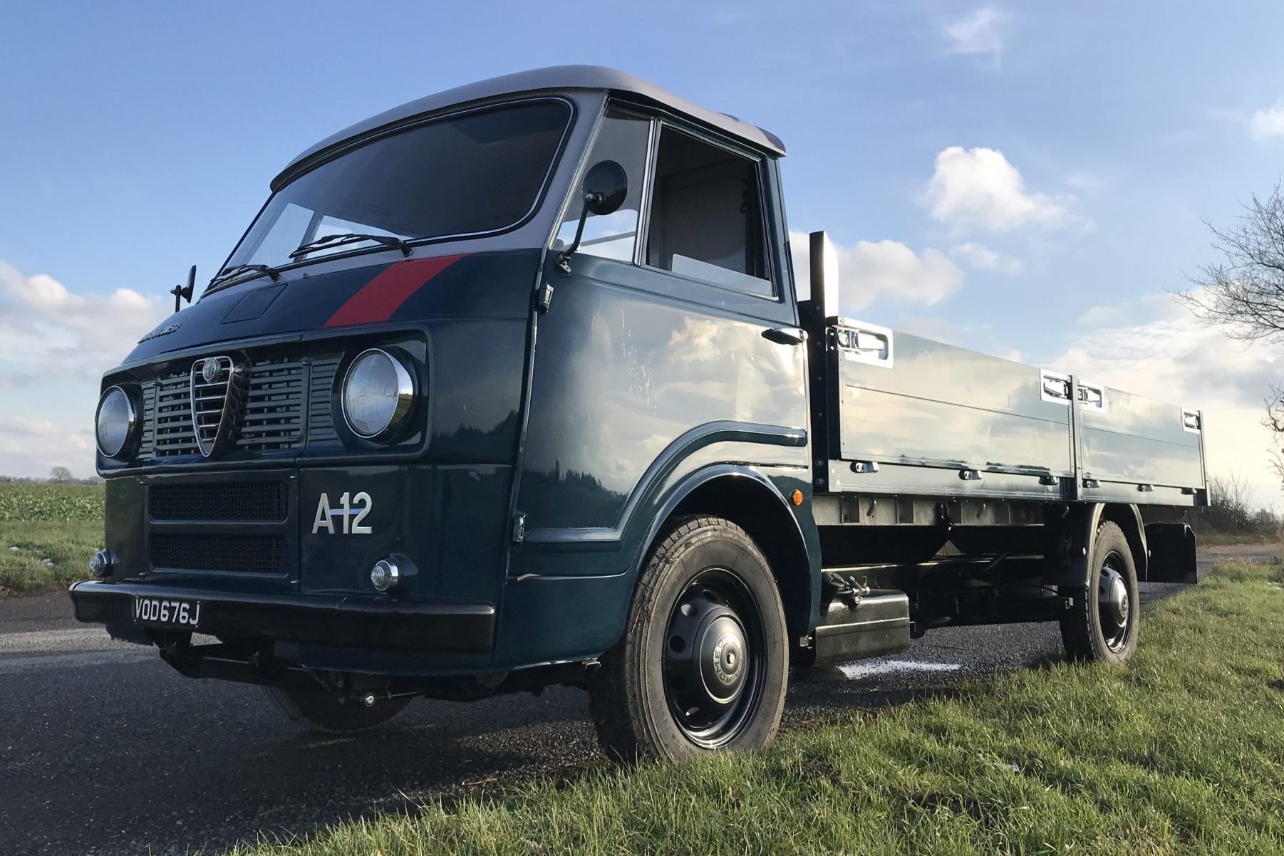 The 16″ steel wheels were media blasted and painted black, and they now wear Alfa Romeo hubcaps and Camac tires sized 6.00-16C. The front brake calipers were stripped, bead blasted, zinc plated, and assembled with new seals and pads. The front discs were skimmed and flexible hoses were renewed, while solid brake lines were remade. The brake master cylinder was bored out and sleeved, and new seals were fitted. The rear drum brakes were freshened with new cylinders.