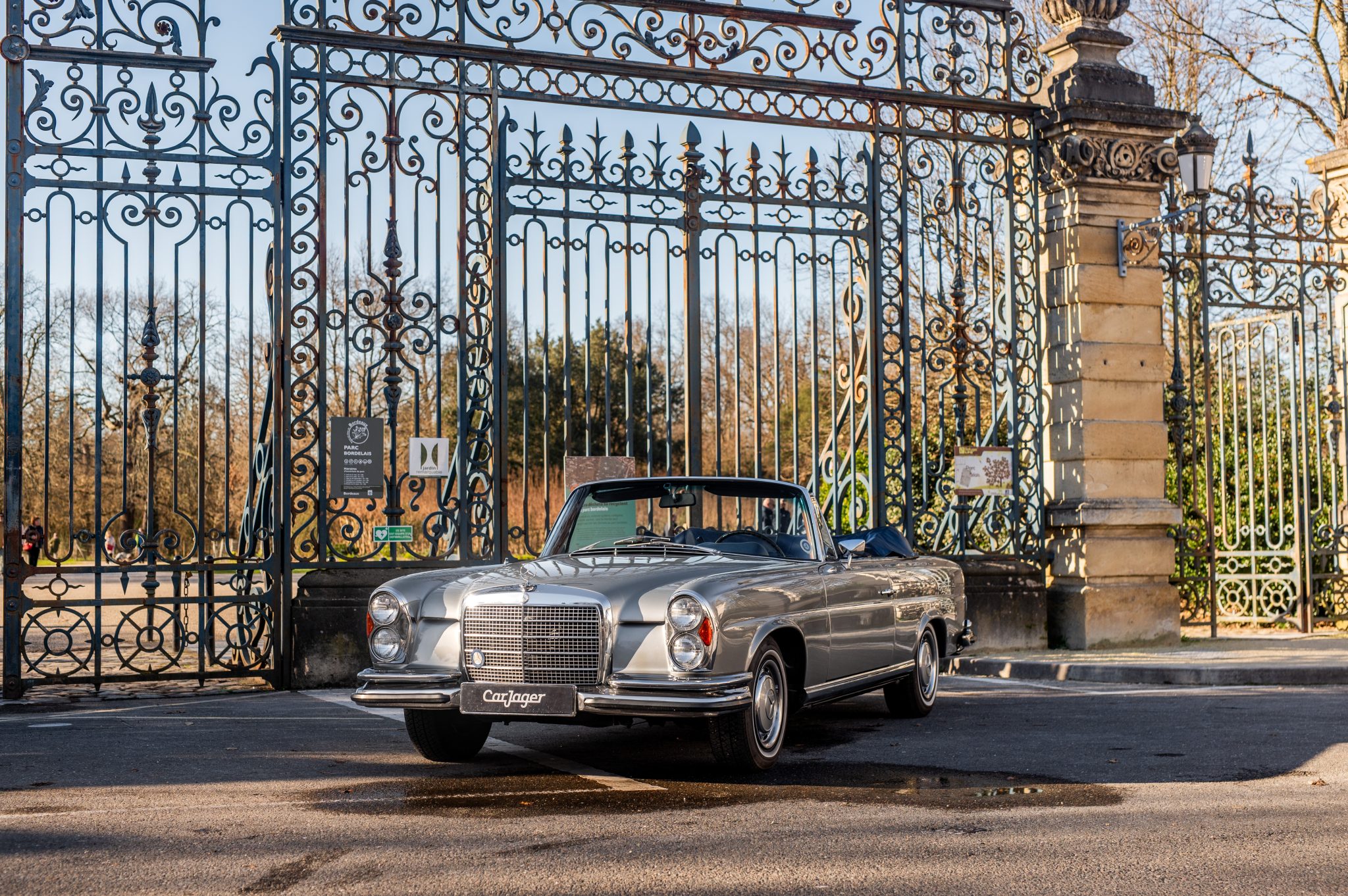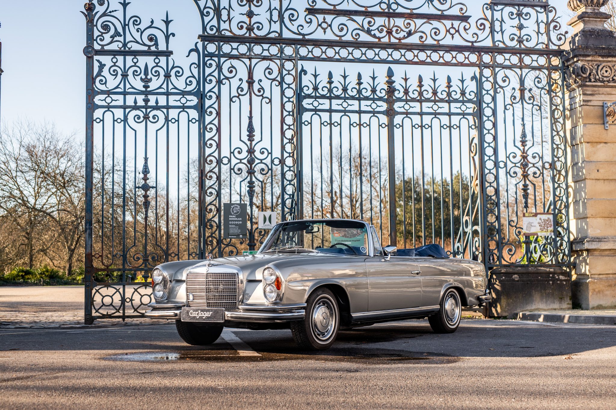 The 280SE 3.5 was factory equipped with four-wheel disc brakes, power steering, and 14″ steel wheels. This car’s Michelin MXV whitewall tires were installed in 2018, and the front brake pads were changed in 2021.