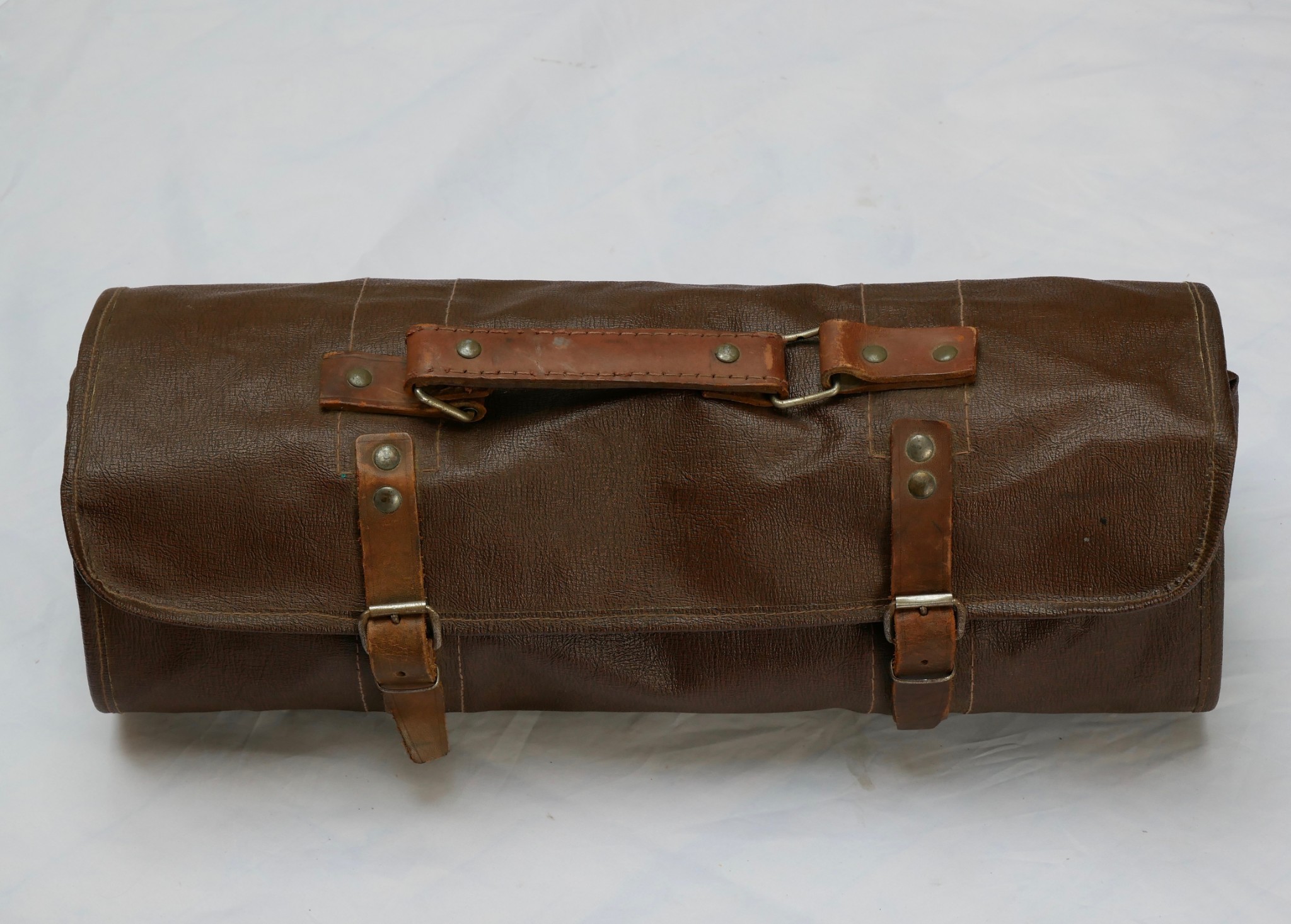 Inside, the tools are retained with dual leather straps. The eight Beta No. 55 metric combination wrenches range from 8 to 23mm and are made of chromium-vanadium steel. An extended spark plug socket wrench is included and equipped with a universal joint.