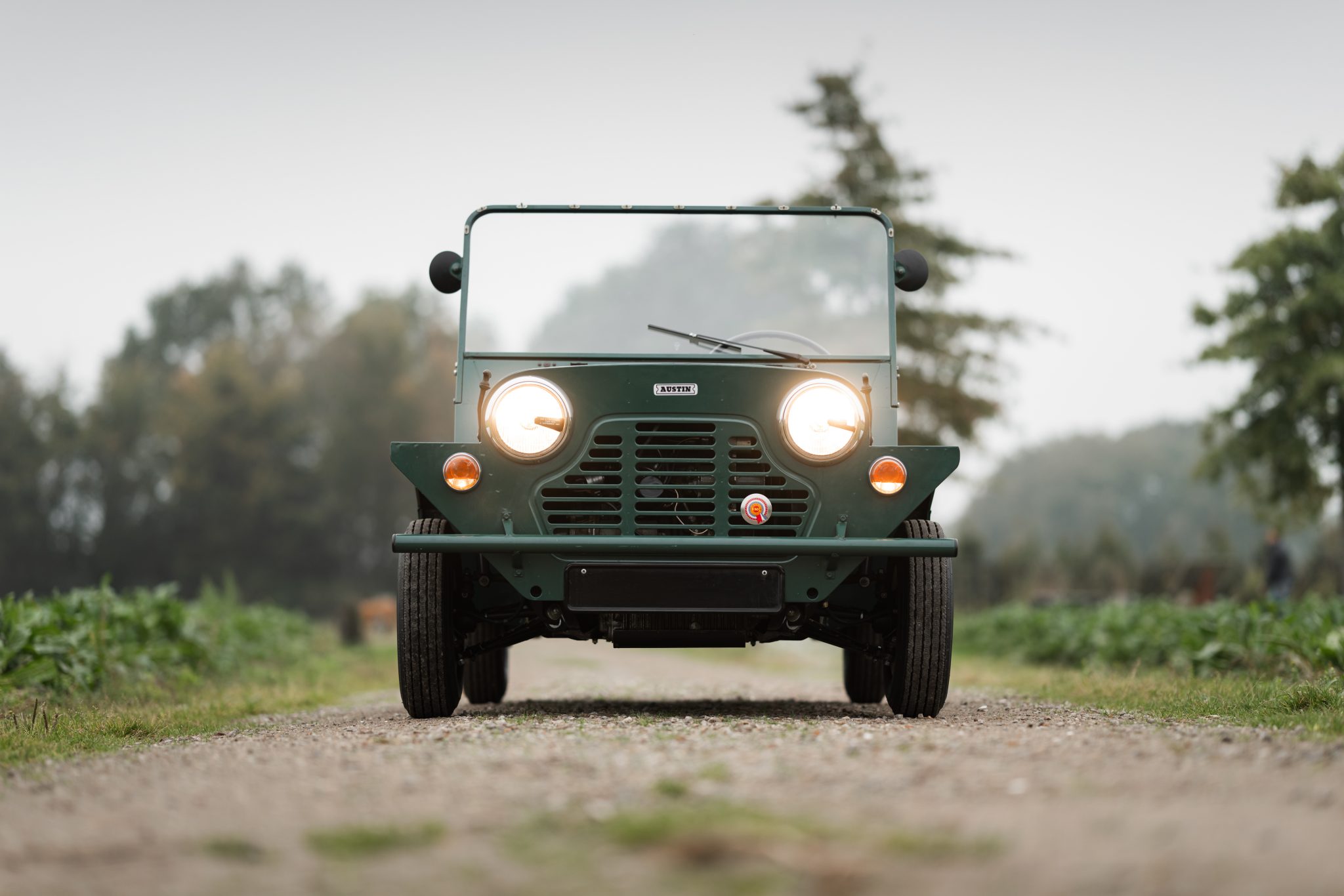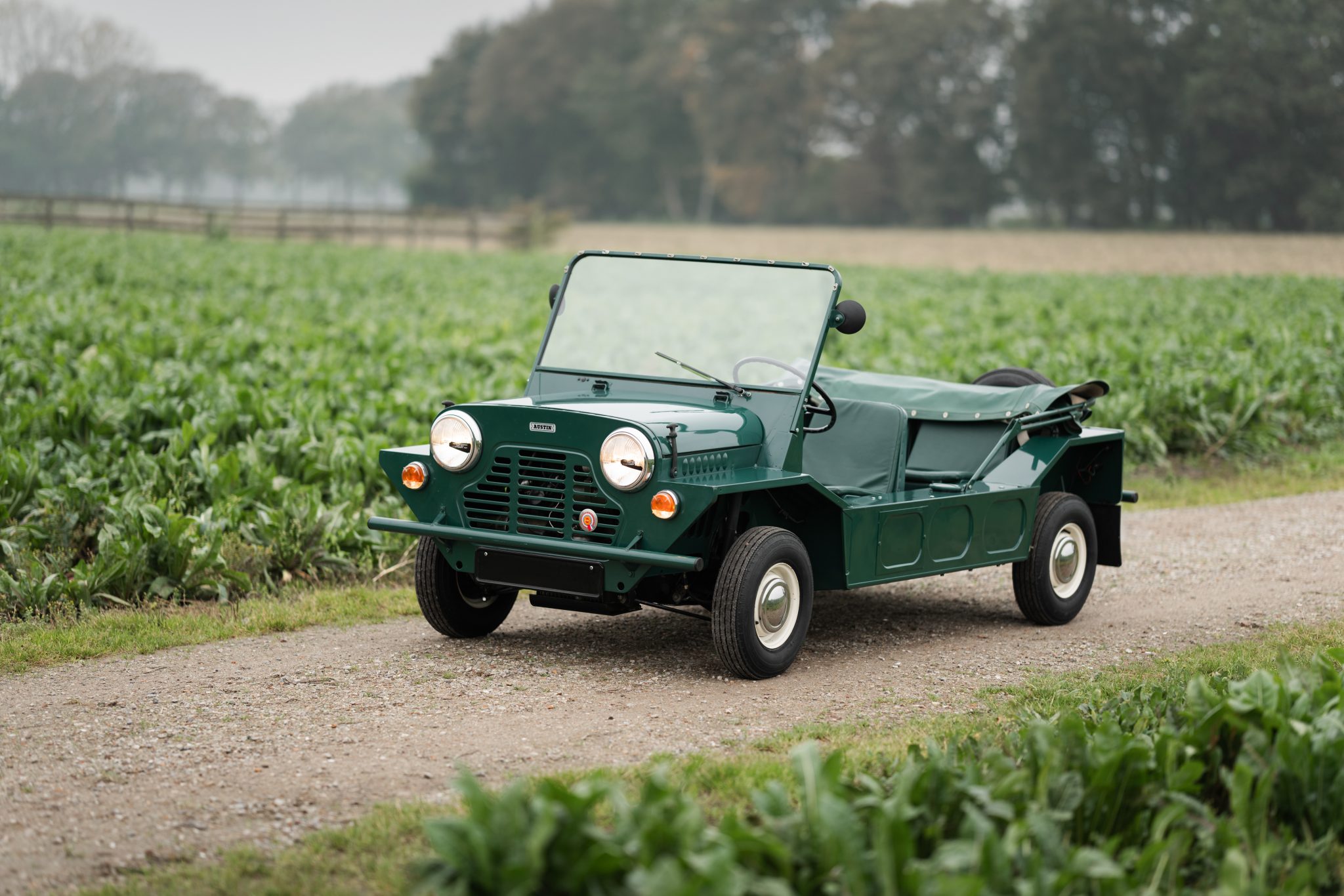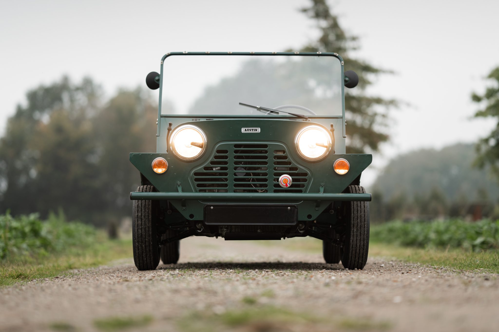 The ivory-finished 10″ steel wheels feature polished hubcaps and are mounted with Dunlop Gold Seal C41 tubeless tires, and a spare is stored out back. Braking is handled by drums at each corner, and the brake hoses and cylinders were recently replaced.