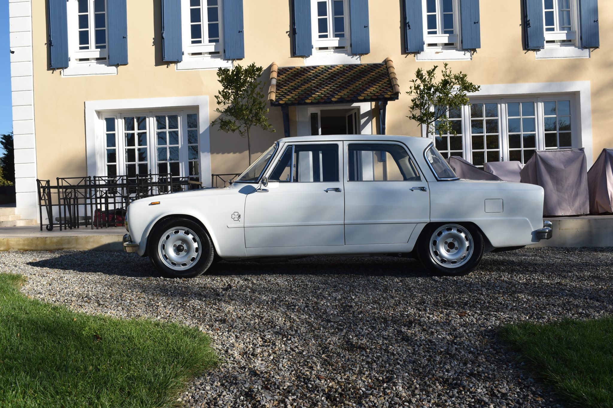 The 15″ TZ-style wheels from Alfaholics are mounted with Michelin Primacy 3 tires, and braking is handled by discs at each corner. The suspension has been modified with an Alfaholics Fast Road kit, which included Bilstein dampers, polyurethane bushings, and Kit C front and Kit B rear springs, respectively.