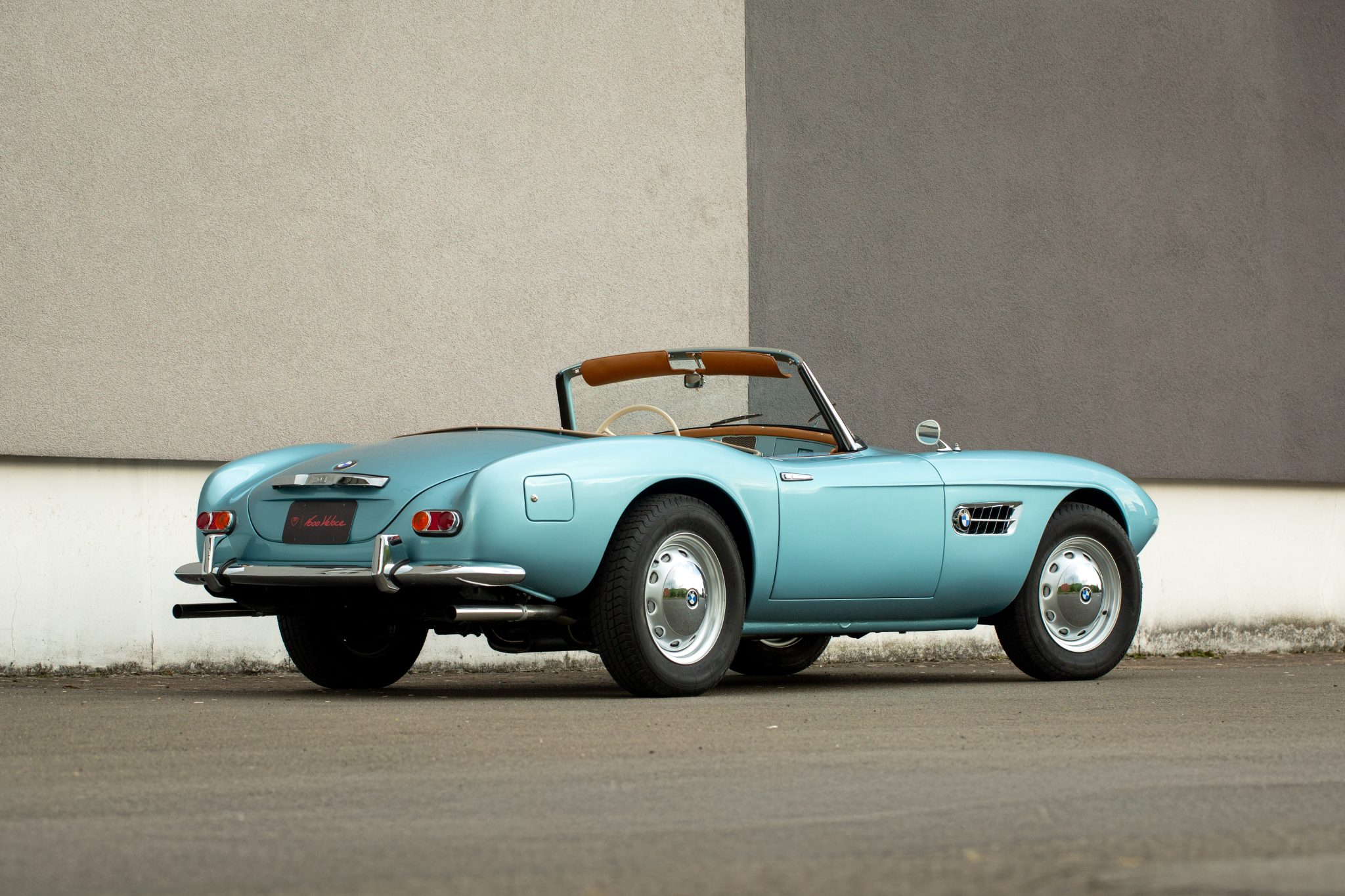 This example’s body is said to have been stripped to bare metal before receiving welding repairs to various panels during the 2021 refurbishment. The car was then repainted using Glasurit finishes in Silver Blue, reportedly its original shade. The project also included re-plating the brightwork, replacement of rubber seals, and the installation of dual fender-mounted side mirrors. The convertible top frame was also refreshed and fitted with a tan soft top.